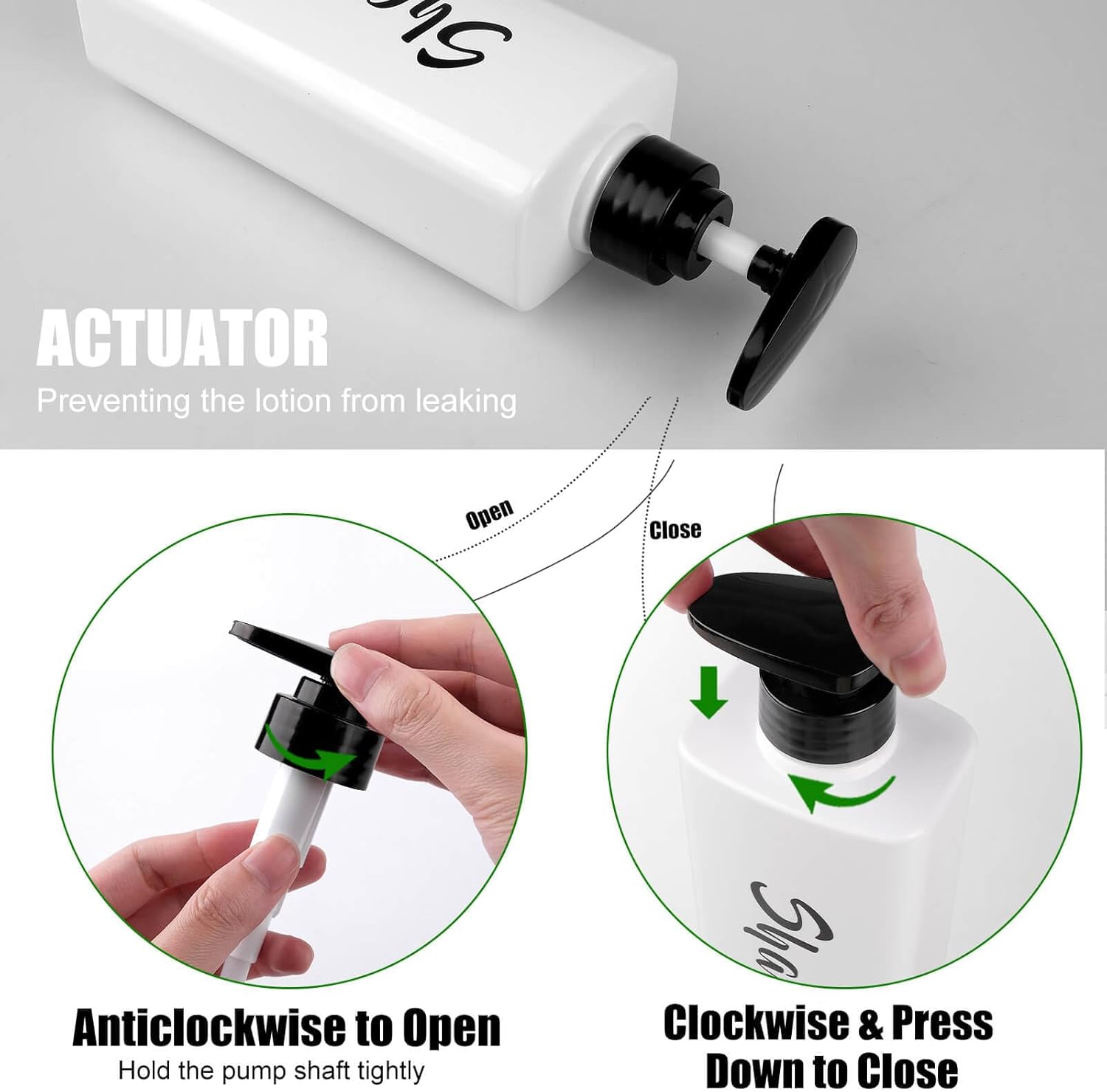 - 🎁【Leak-Proof & Easy to Refill】: The portable shampoo conditioner body wash dispenser can be taken with you whenever you travel. Press down and twist clockwise to close, preventing the lotion from leaking. Twist anti-clockwise to open and use. The shower dispenser bottle comes with a premium 4cc wide pump opening, making it easy to take any liquid in and out of them in no time.