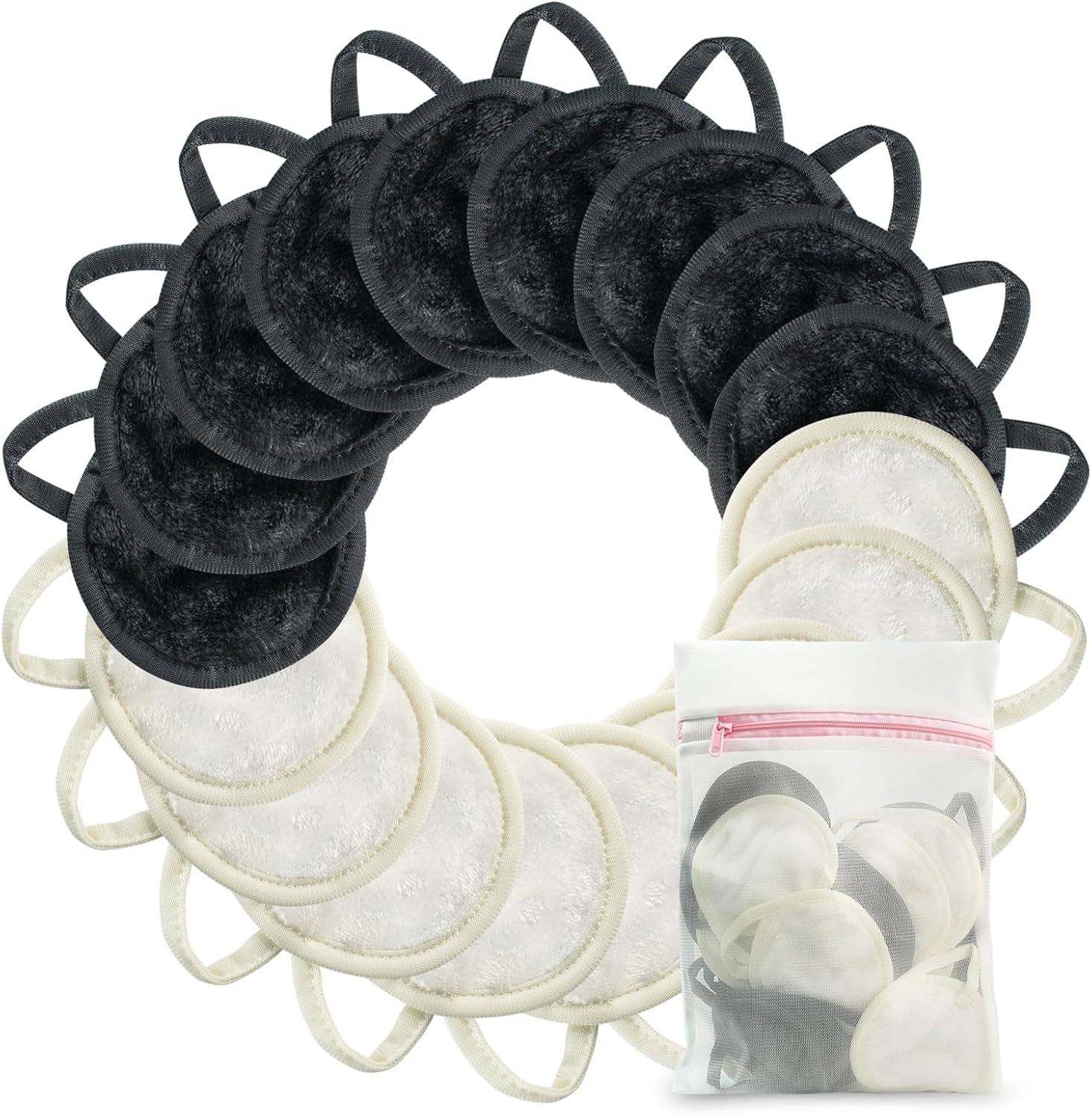 - Package Included: Comes with 18 packs of grey/white colors reusable round facial pads and one piece of washable mesh laundry bag. Each pad measures 3.74 x 3.74 inches. Each has a handy hanging loop for easy storage and quick drying. Perfect for daily use or travel