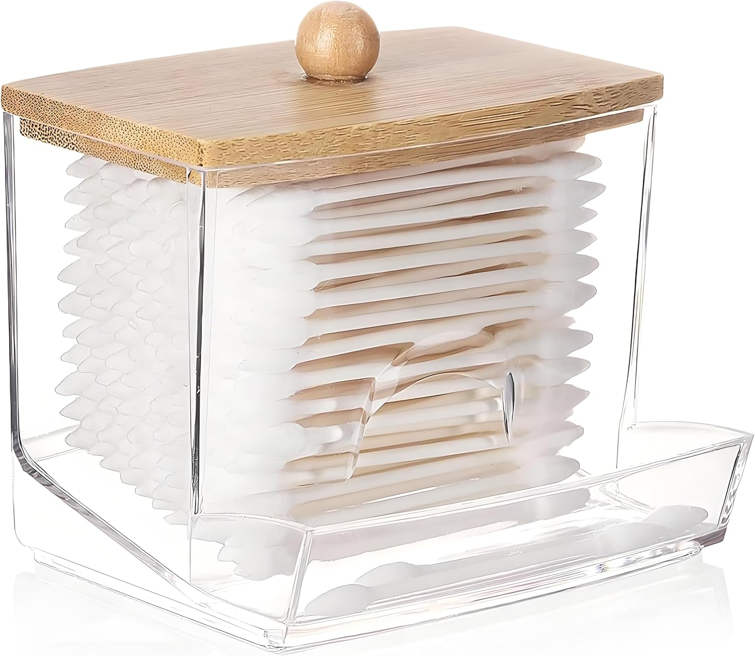 - Spacious Storage: With a capacity to hold approximately 130 q-tips, this dispenser ensures ample storage for your bathroom necessities