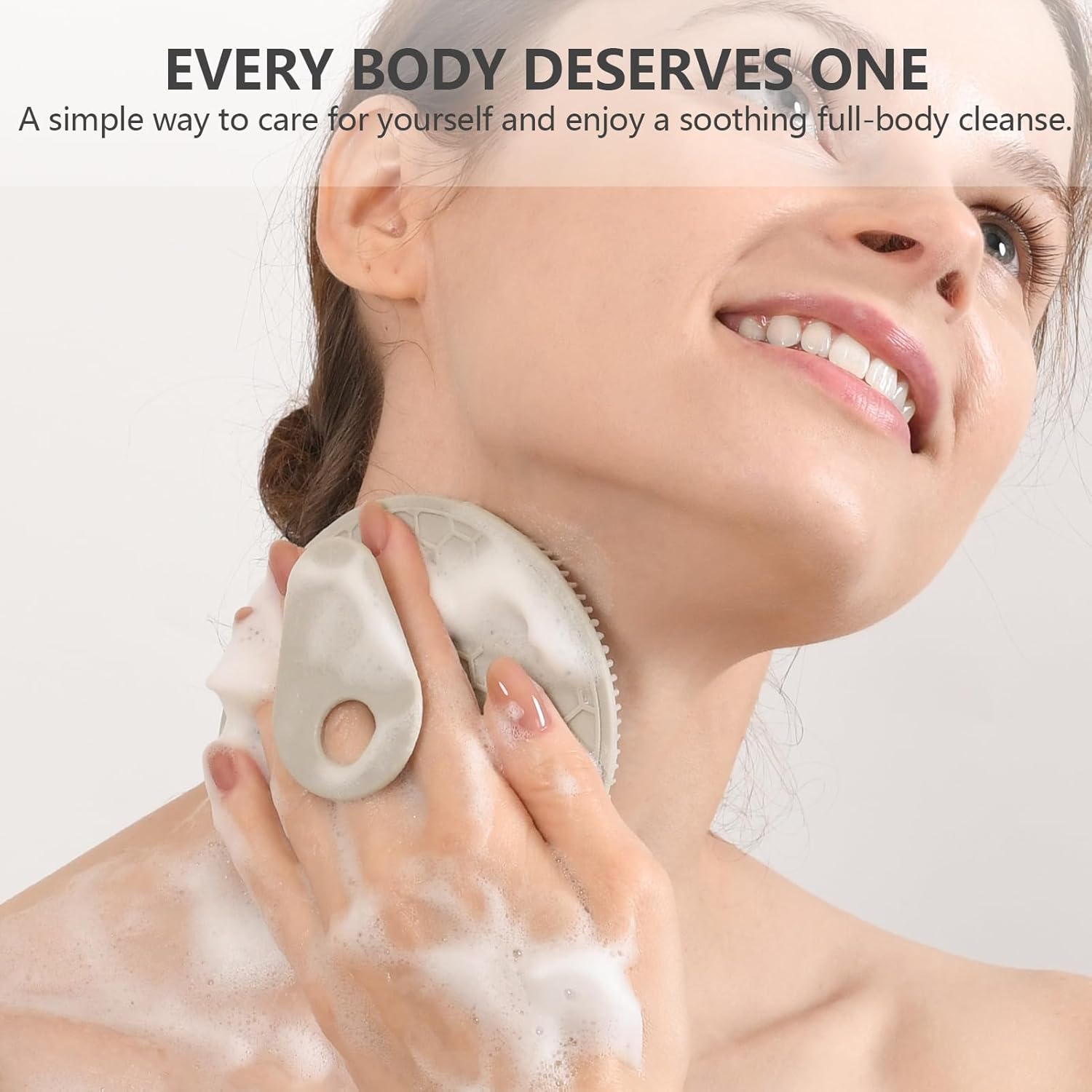 - COMFORTABLE EXFOLIATION WITH MASSAGING TOUCH: Experience a deep cleanse with the added benefit of gentle exfoliation. The slightly firmer bristles of this silicone shower scrubber provide a satisfying massage as you shower, helping to rejuvenate your skin while leaving it soft, smooth, and refreshed. Perfect for sensitive skin while providing a more invigorating wash.