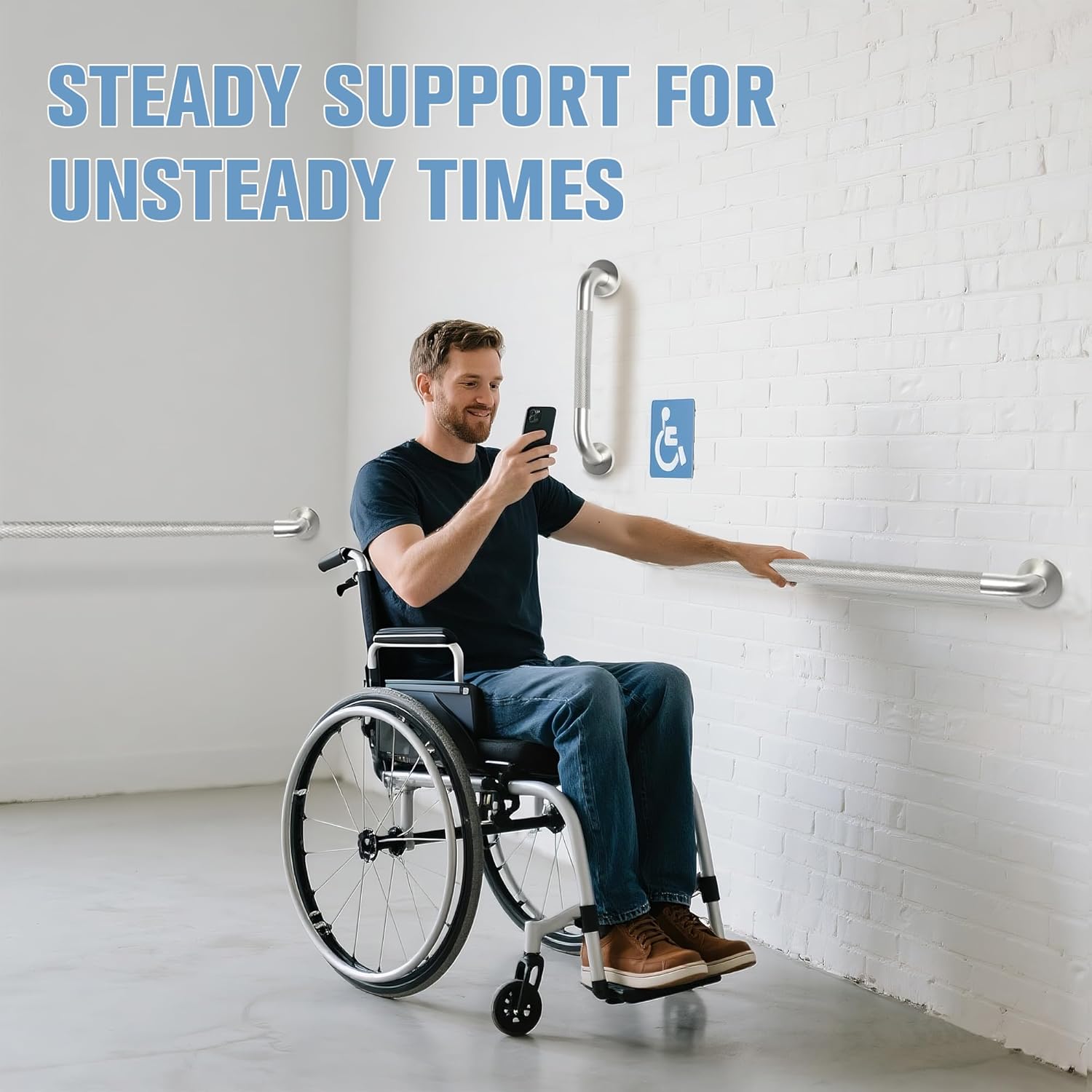 - 6-STEP INSTALLATION: The handicap grab bars easily screws into stud for wall mounted installation, can be securely mounted at any angle around toilets, showers, or bathtubs— where support is needed most