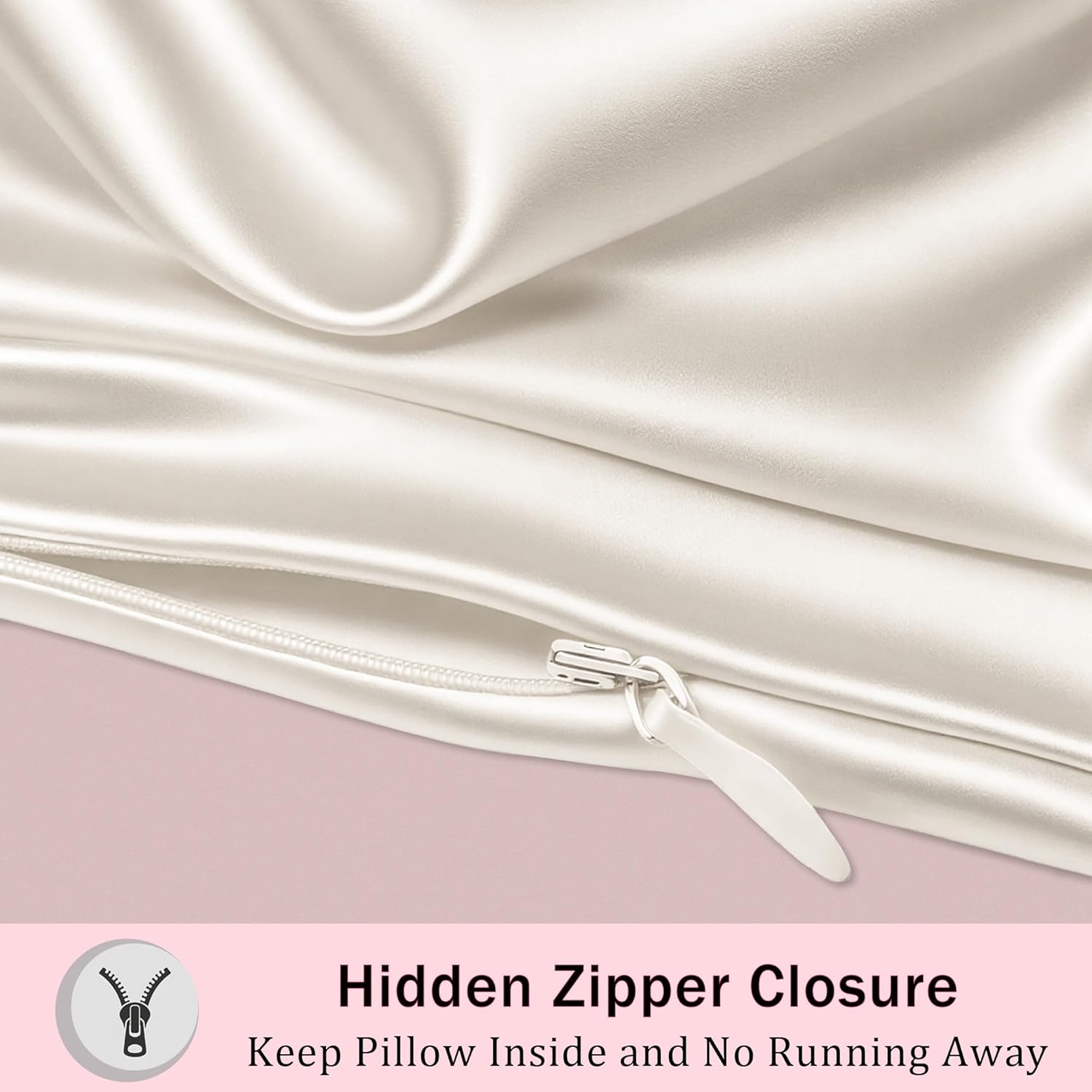 Mulberry Silk Pillow Cases with Zipper, Ultra Smooth Soft Breathable Cooling Pillow Cases for Hot Sleepers, Silk Satin Pillowcase for Hair and Skin, Gifts for Women (Ivory, Queen Size, 1 Pack)