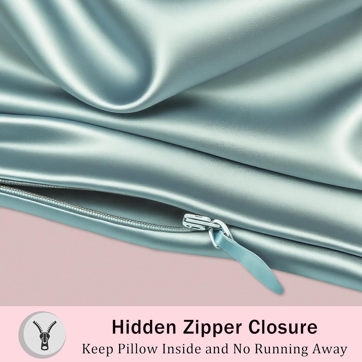 • 【Premium Zipper Closure】 Silk pillow case with hidden zipper design keeps pillow securely tucked in for a seamless look