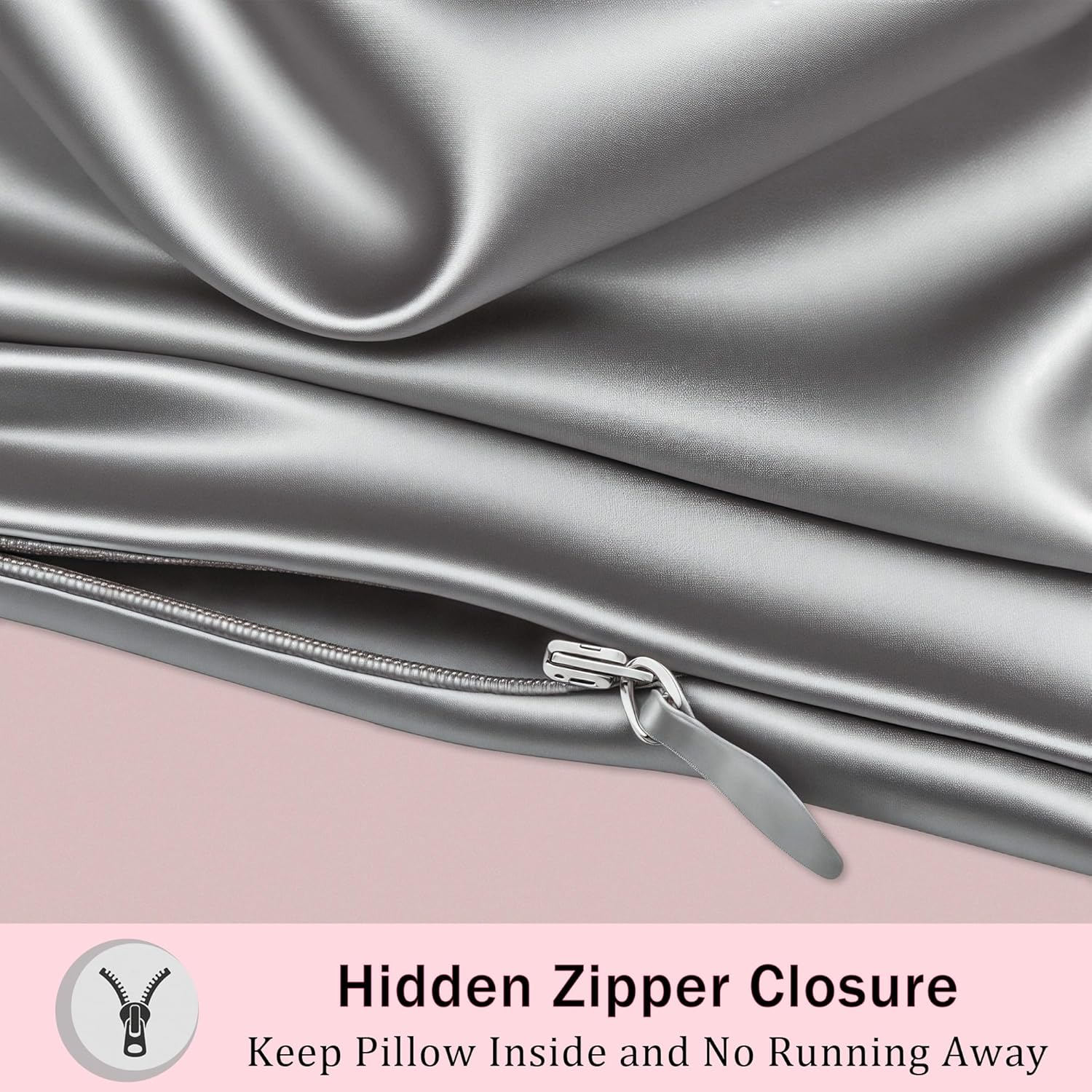 Mulberry Silk Pillow Cases with Zipper, Ultra Smooth Soft Breathable Cooling Pillow Cases for Hot Sleepers, Silk Satin Pillowcase for Hair and Skin, Gifts for Women (Silver Grey, King Size, 1 Pack)