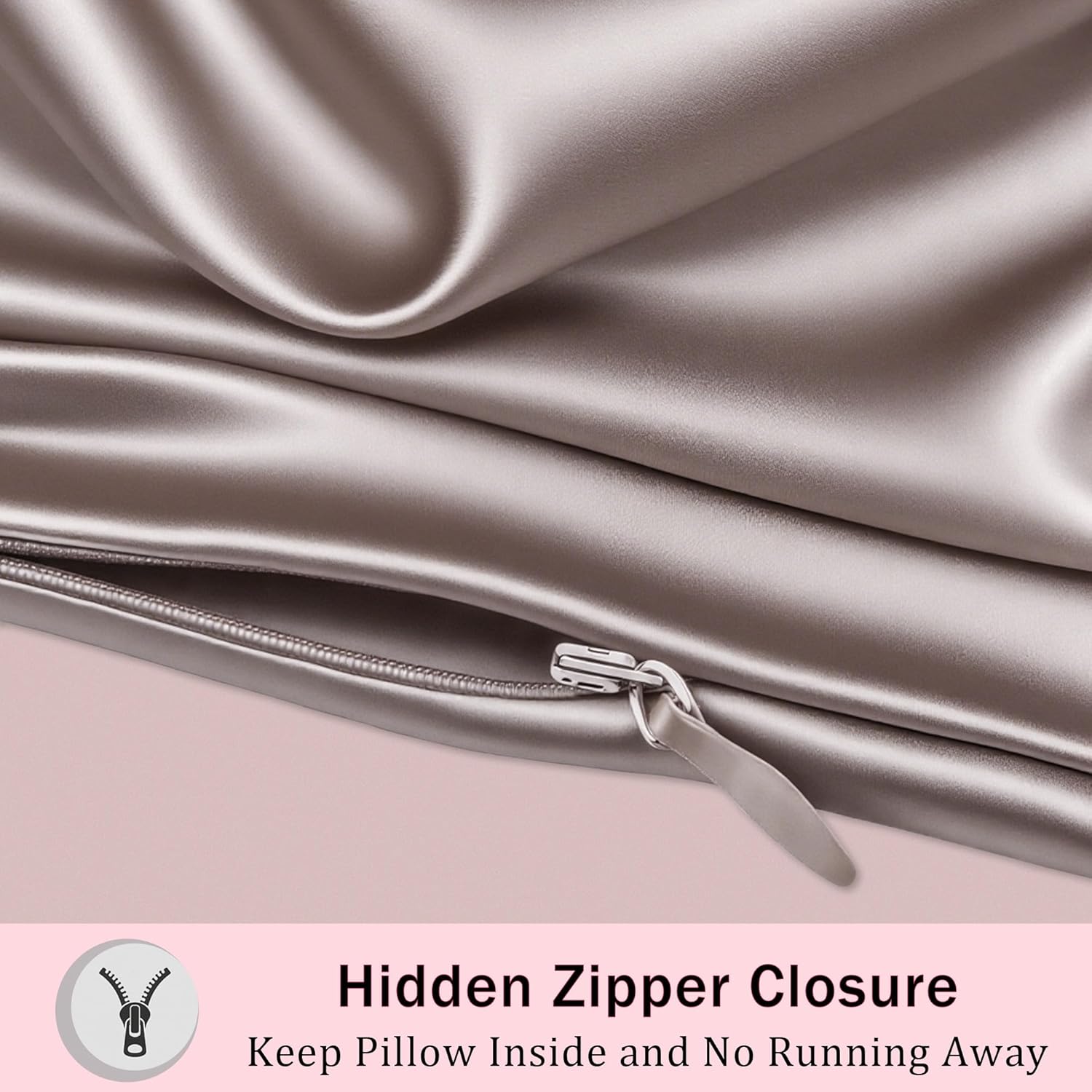 Mulberry Silk Pillow Cases with Zipper, Ultra Smooth Soft Breathable Cooling Pillow Cases for Hot Sleepers, Silk Satin Pillowcase for Hair and Skin, Gifts for Women (Taupe, Standard Size, 1 Pack)