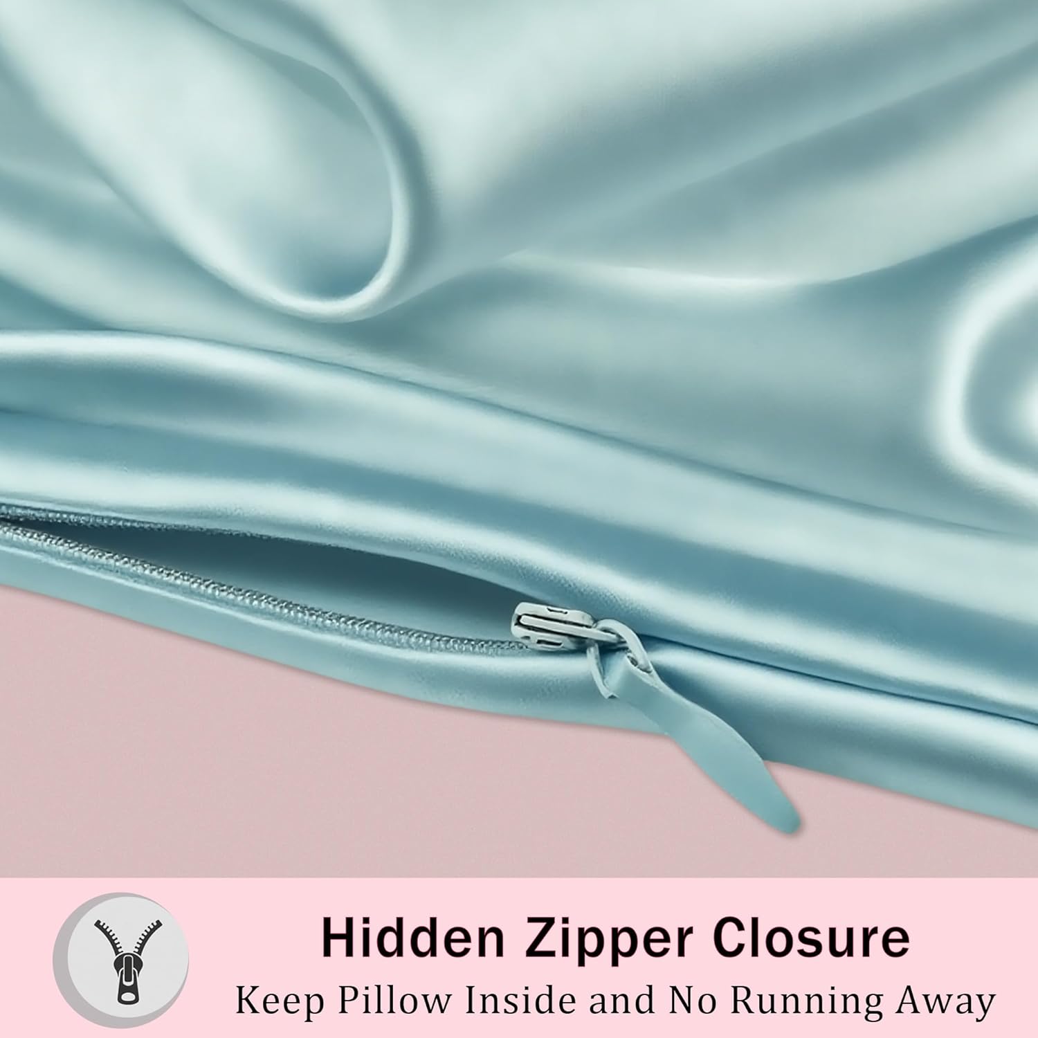 Mulberry Silk Body Pillow Pillowcase with Zipper, Ultra Smooth Soft Breathable Cooling Pillow Cases for Hot Sleepers, Silk Satin Body Pillow Cover for Hair and Skin (Haze Blue, 20×54 Inches, 1 Pack)