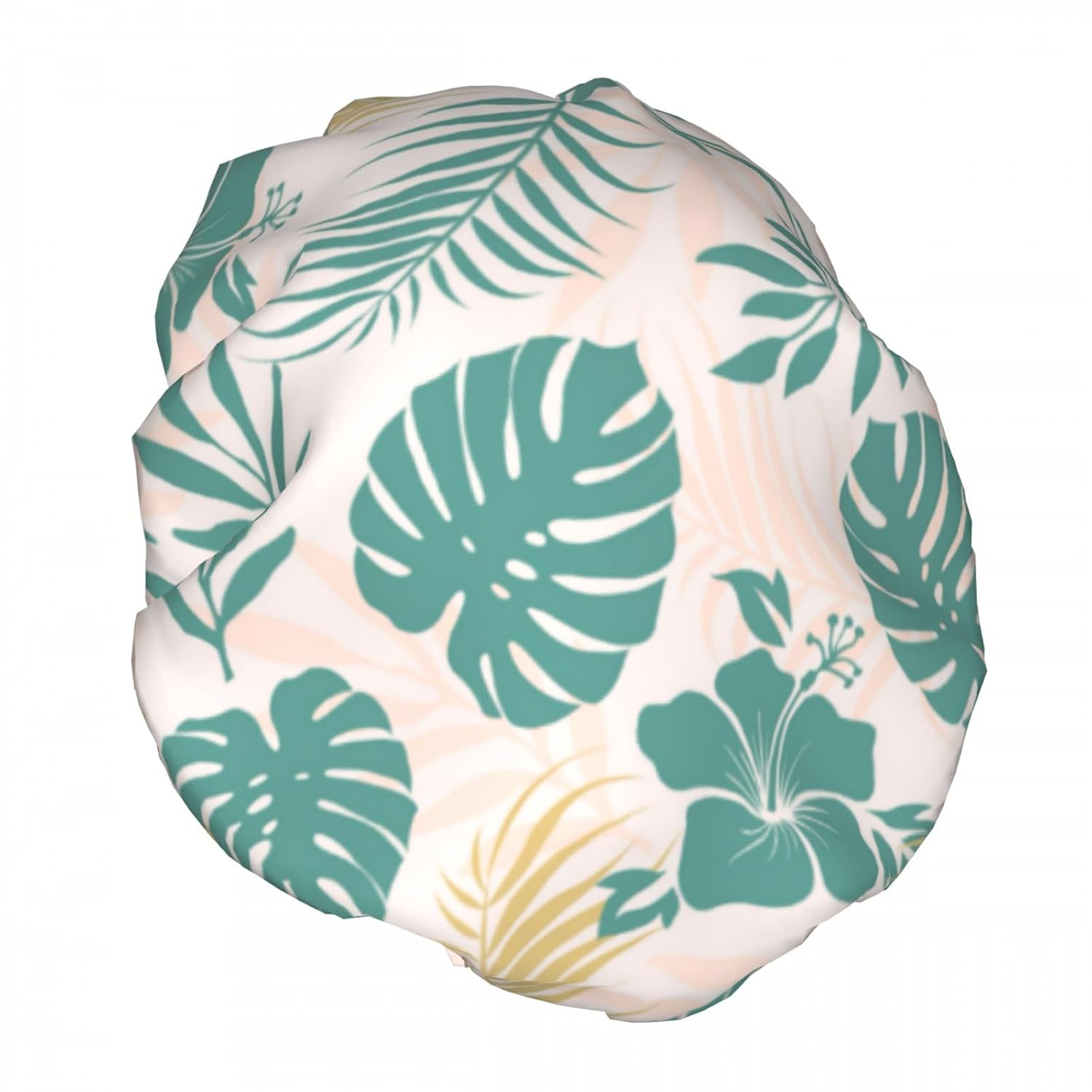 Palm Leaf Nature Double Layer Waterproof Shower Cap for Women Reusable Bath Cap for All Long Hair Lengths Soft Bath Shower Hat