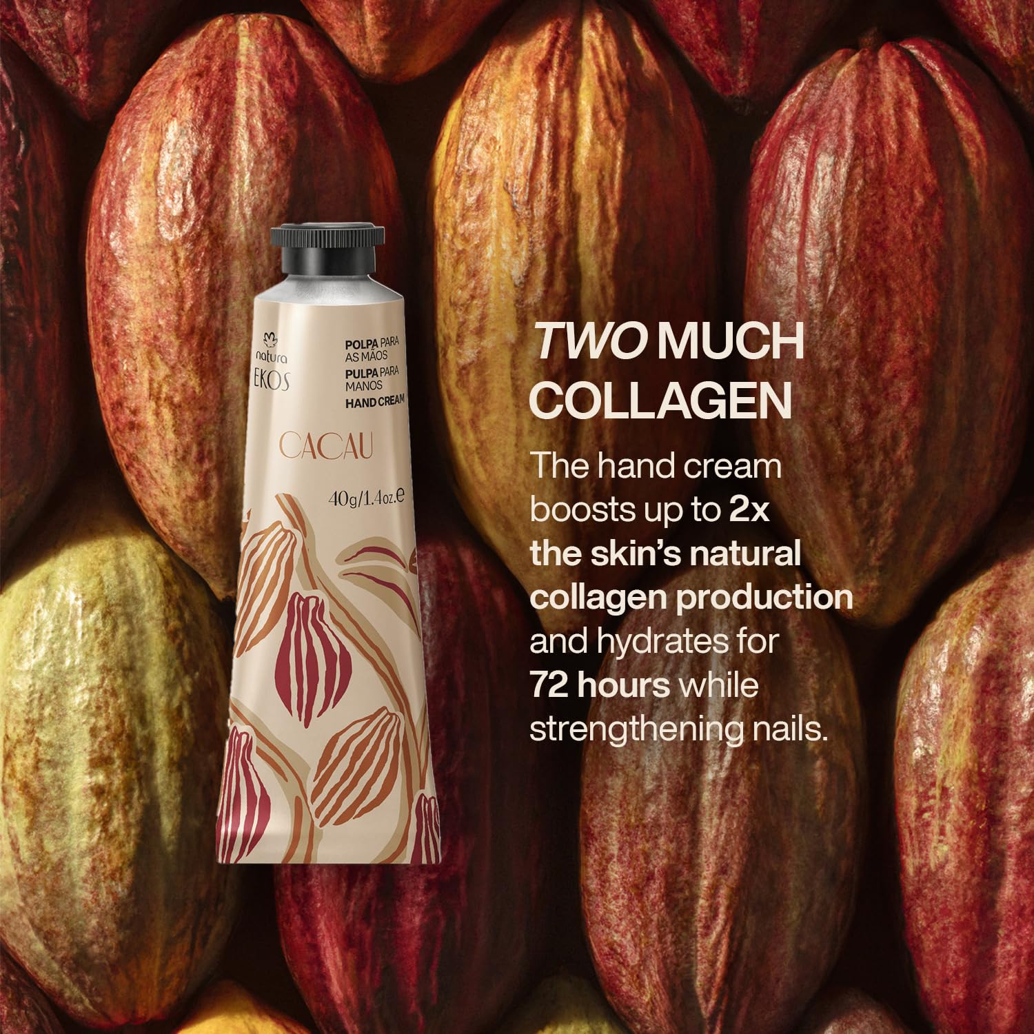 - Deep Hydration and Collagen Boost – Cacau-Powered Lip and Hand Care Duo Indulge in the nourishing power of Amazonian Cacau with this two-in-one kit featuring Ekos Cacau Hand Cream and Lip Balm. Enriched with raw Cacau butter, both formulas stimulate up to 2x more collagen production, delivering 48-hour hydration and helping to restore your skin’s natural barrier for visibly smoother hands and lips. This essential duo is perfect for daily use, travel, or gifting.