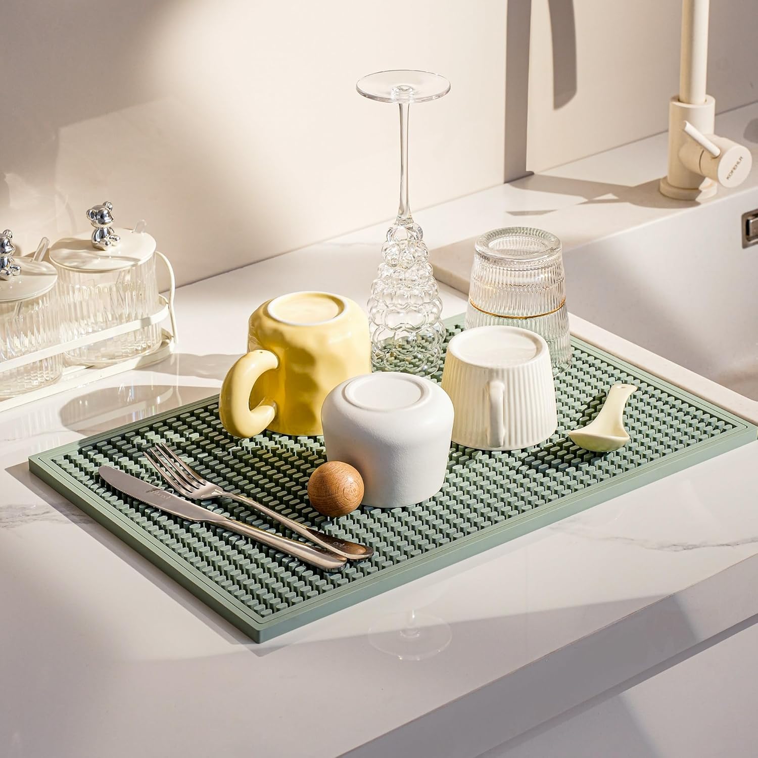Dish Drying mat - 18" x 12" Green Silicone Drying mat, Kitchen Counter Dish Drying mats,Rubber Dish Drying mat, Applies to bar mat、Coffee mat
