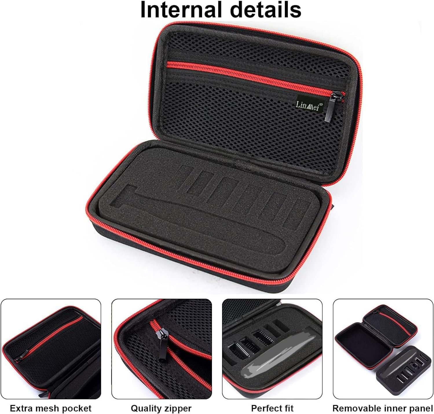 - Smart Storage Design – Elastic straps secure the trimmer; mesh pockets hold replacement blades, charger, and small accessories