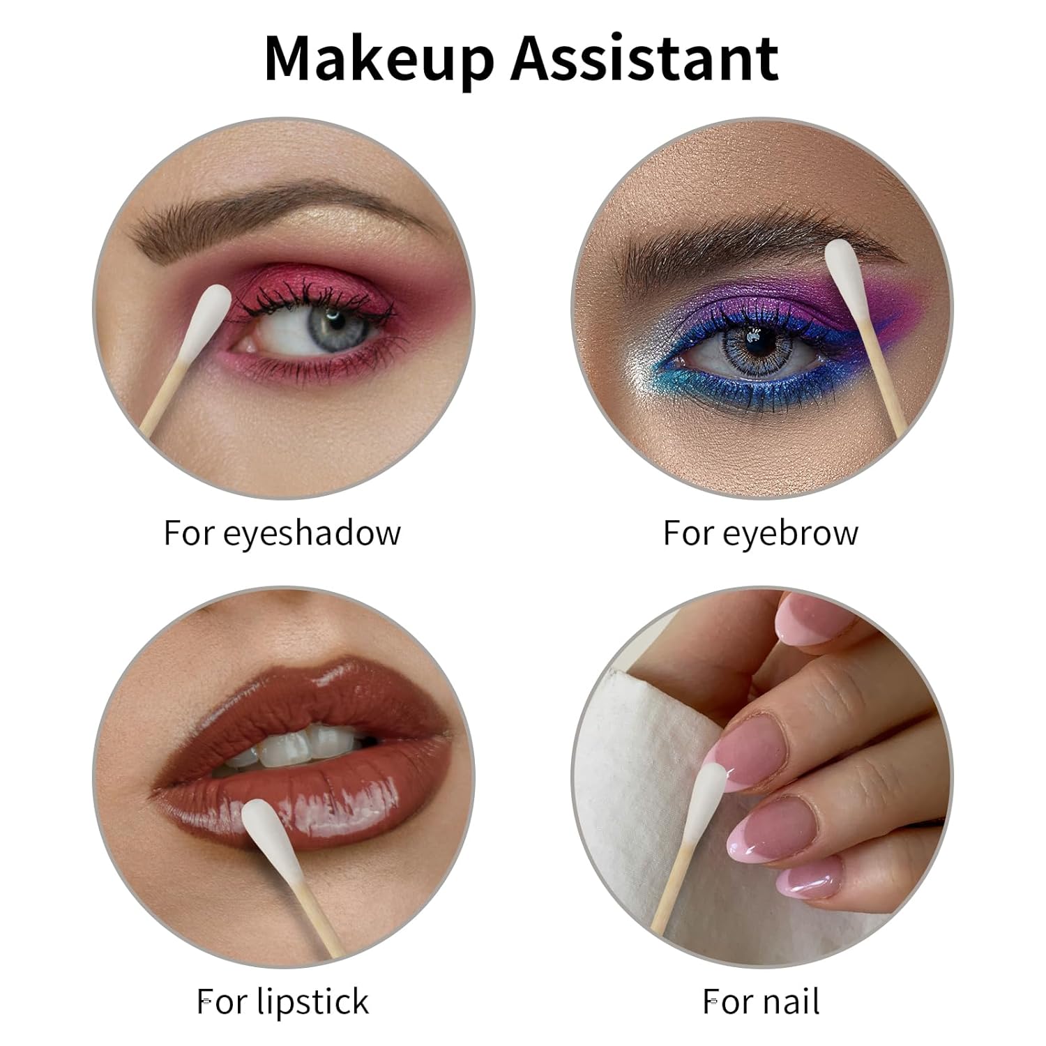 - Makeup Assistant: Cotton swabs for makeup are perfect for correcting or touching up makeup mistakes & cleaning messup, can be used to remove extra eyeliner, eyeshadow and nail polish, essential makeup & lash supplies. If after you finish your eye makeup and apply mascara that always smudges onto your eyelids, these large cotton swabs make it easy to get the spots and remove just the little black spots instead of blending it to look like a smokey eye or remove the eyeshadow you just applied.