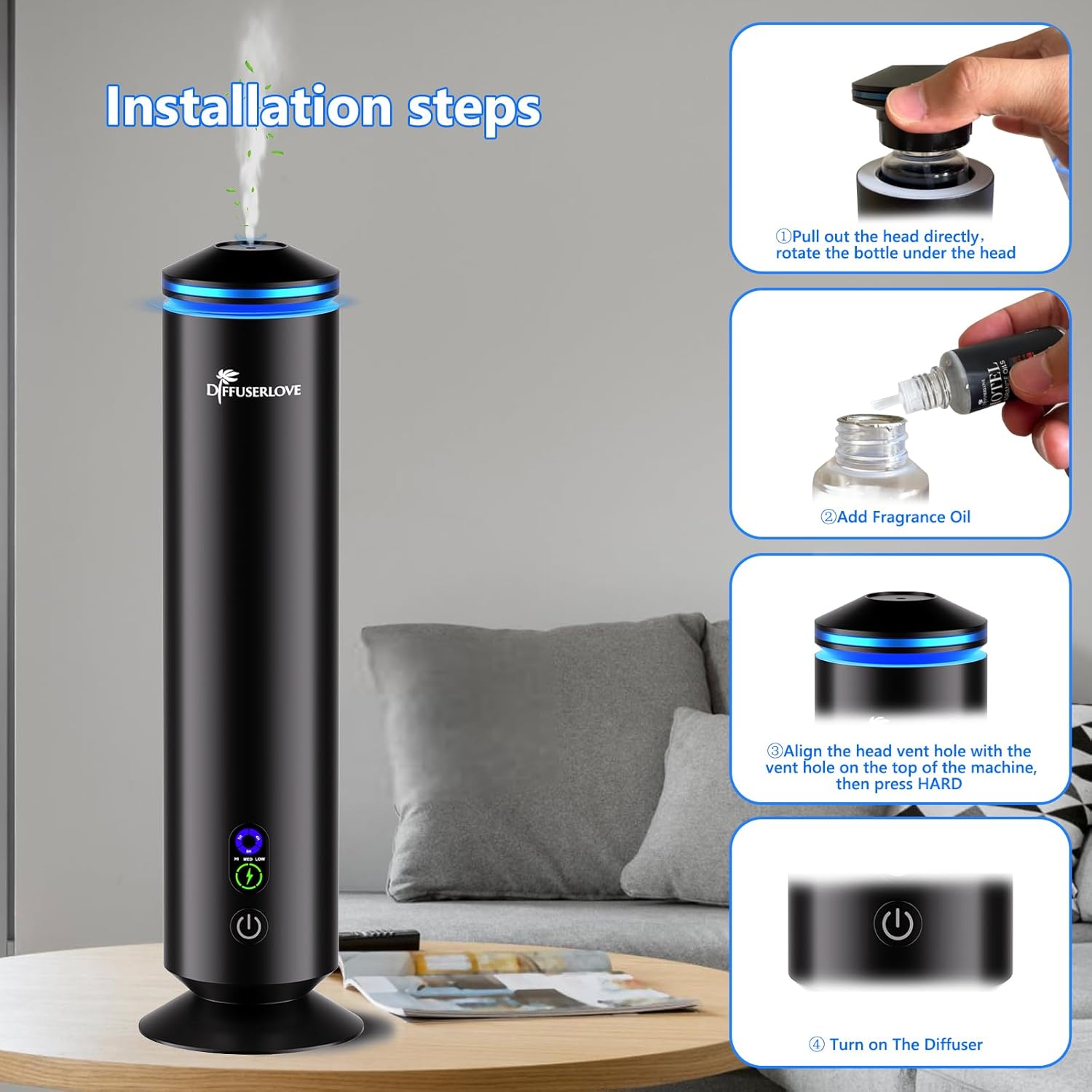 - 【Waterless】hotel diffusers for home can perfectly blend with any decorative style in various scenarios such as homes, shopping malls, and hotels, showcasing your taste.Our air diffuser hotel collection featuring a sleek tower-shaped luxury design crafted from premium aluminum alloy.