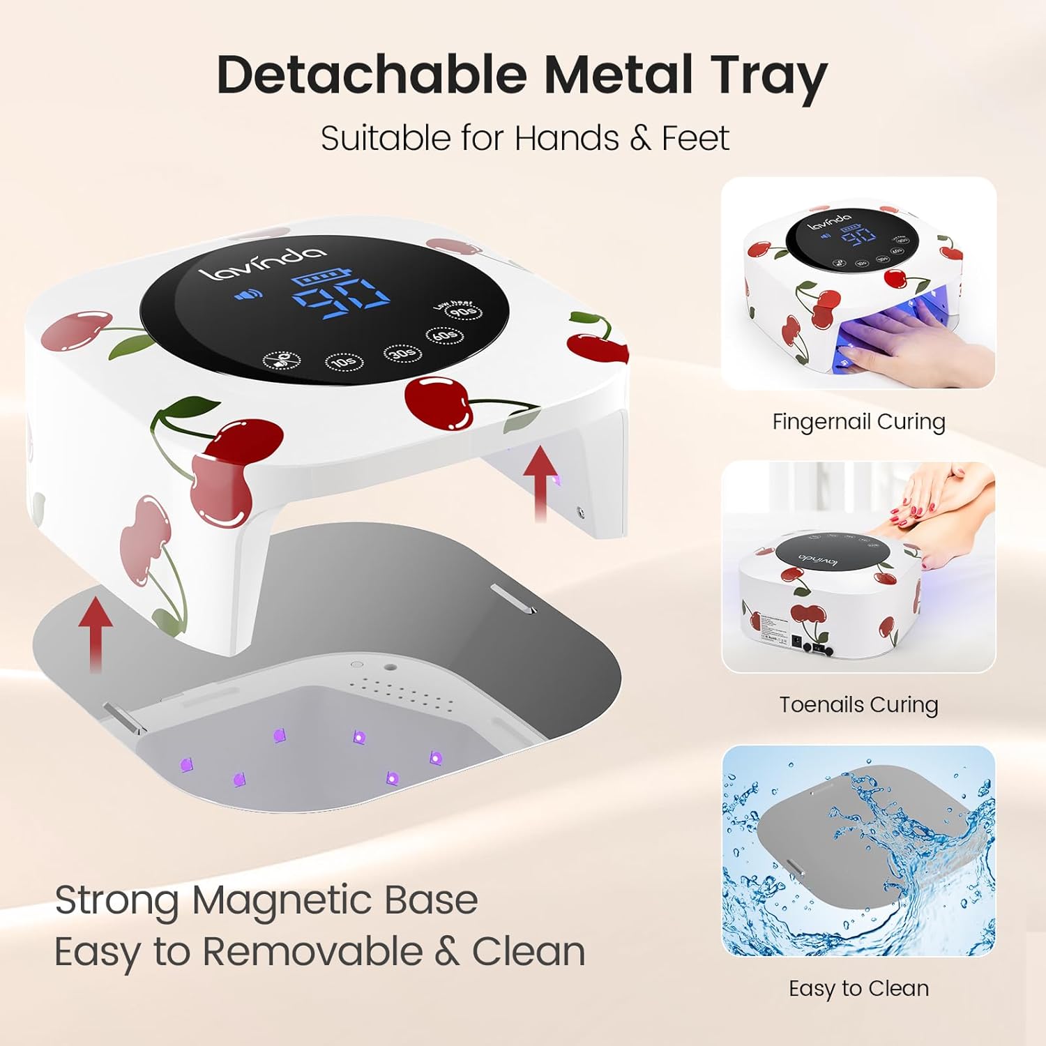 Lavinda 54W Nail Lamp UV Light for Gel Nails Rechargeable Cordless UV Lamp Nail Light with 4 Timer, 2X Faster Professional Gel Polish Curing Nail Dryer for Salon Use-Cherry Print