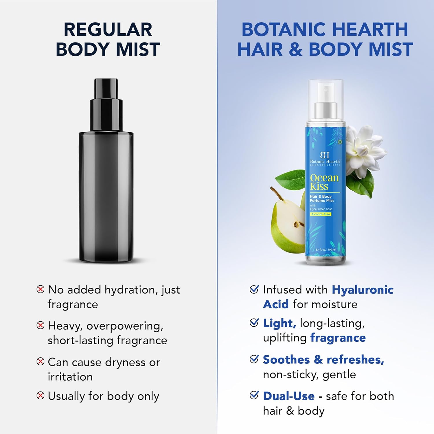 Botanic Hearth Ocean Kiss Hair & Body Perfume Mist with Hyaluronic Acid – Alcohol-Free Refreshing Fragrance Spray, Long Lasting Hydrating Mist for Women & Men, 3.4 fl oz