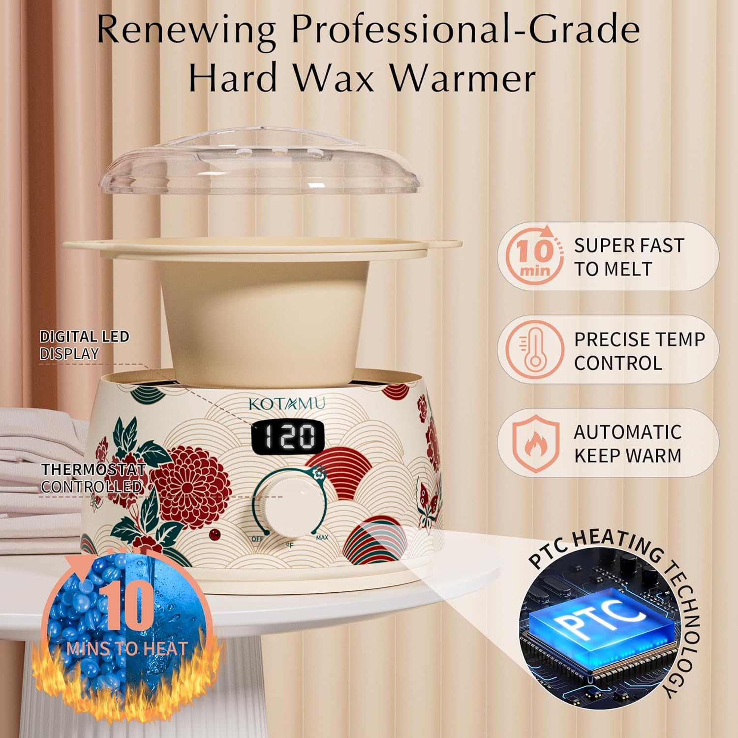 - 10 MINUTES TO HEAT - Uneven melting leads to brittle wax? Not anymore! KOTAMU wax machine features innovative PTC technology and an "Automatic Keep Warm" function, ensuring your wax beans always stays ready for serving! No wait, just smooth application
