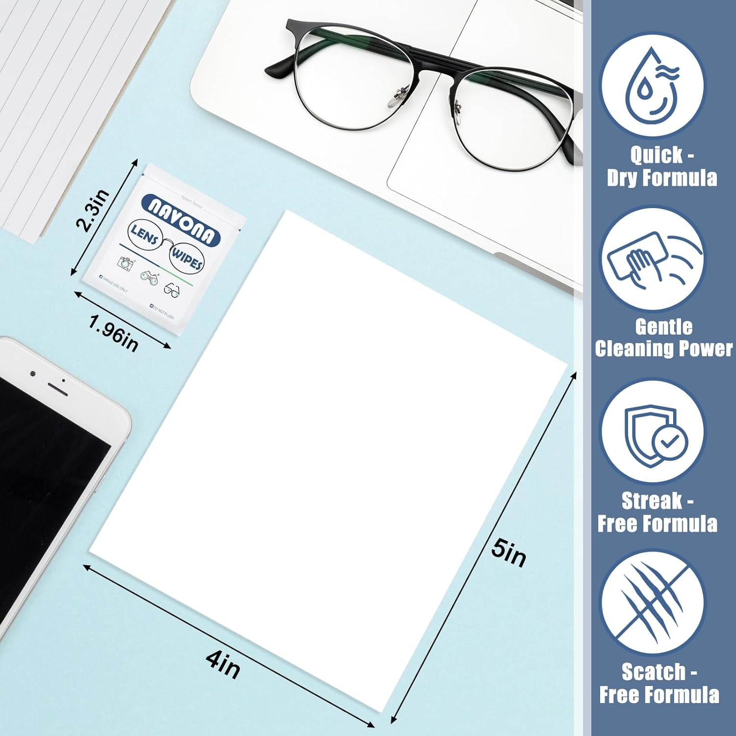 - 【Scratch-Free Glasses Cleaner Wipes】Made from ultra-soft, non-abrasive material, our glasses cleaner wipes clean without scratching your lenses. Enjoy a streak-free, scratch-free experience that protects your eyewear while keeping your vision sharp.