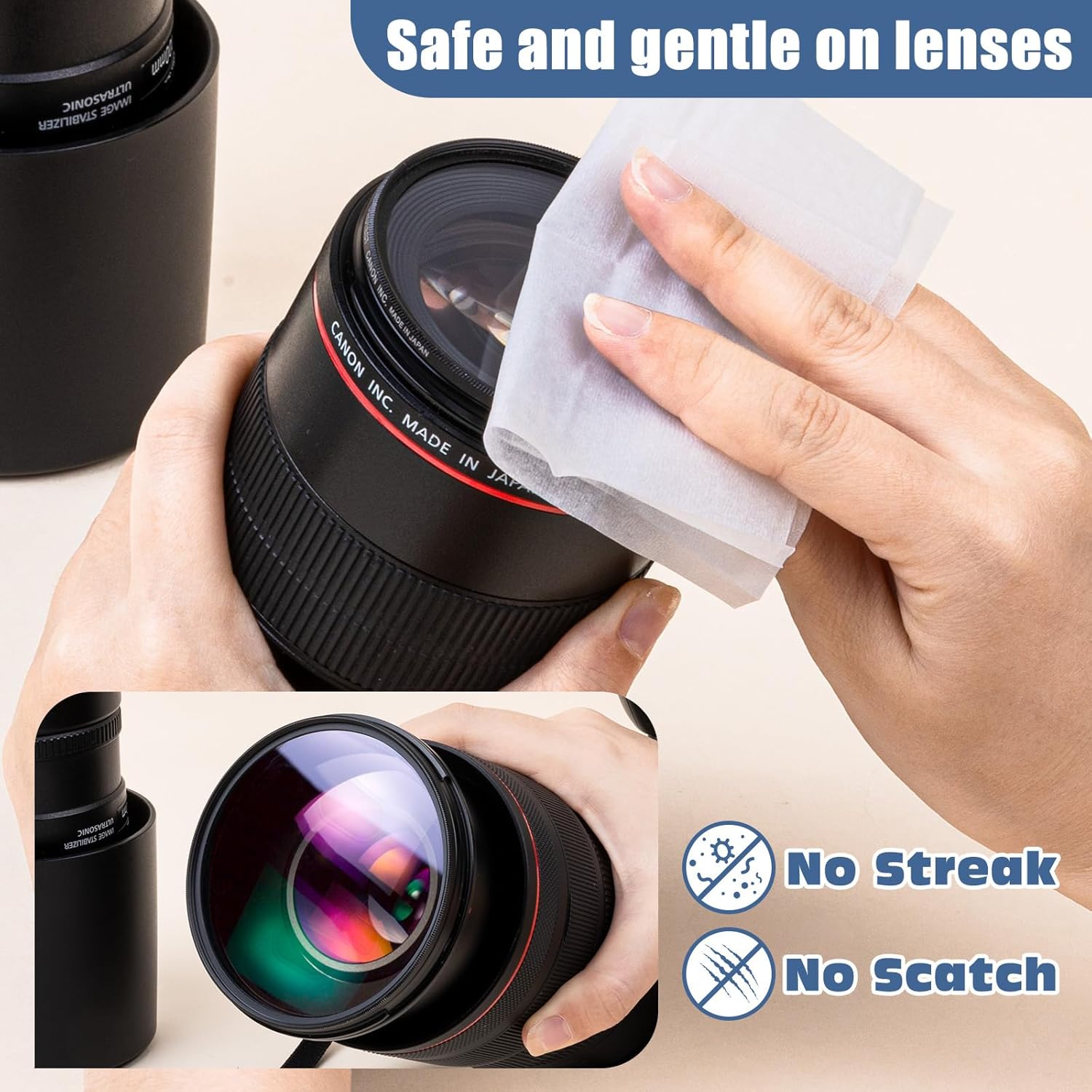 - 【Safe & Ammonia-Free Lens Cleaner Wipes】These ammonia-free lens cleaner wipes are safe for all types of lenses, including anti-reflective, polarized, and coated surfaces. Whether you're cleaning eyeglasses or camera gear, our formula leaves no damage—just streak-free clarity.