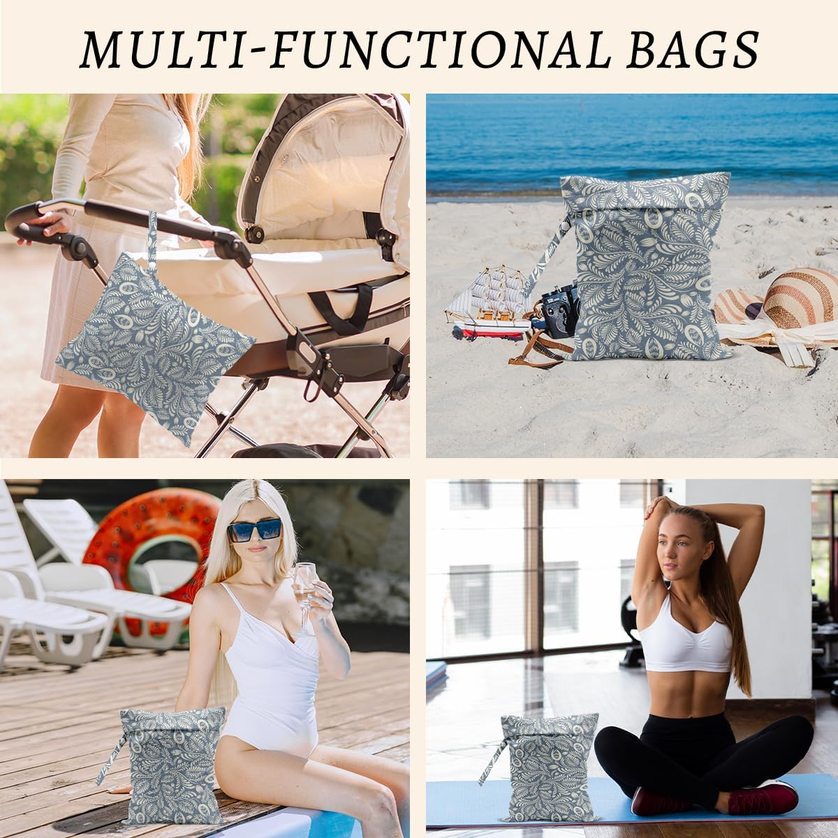- Multi-Functional: Our wet bags have lots of uses. With a snap handle, snap your bag wherever you need it - changing, suitcase, table or tote bag. They are suit for carrying wet swimsuit bag diapers, wet swimsuits and sanitary napkin, menstrual pad; not just for wet stuff - these bags make excellent organizers for toys, cosmetics, accessories, toiletries, electronics, travel and more.