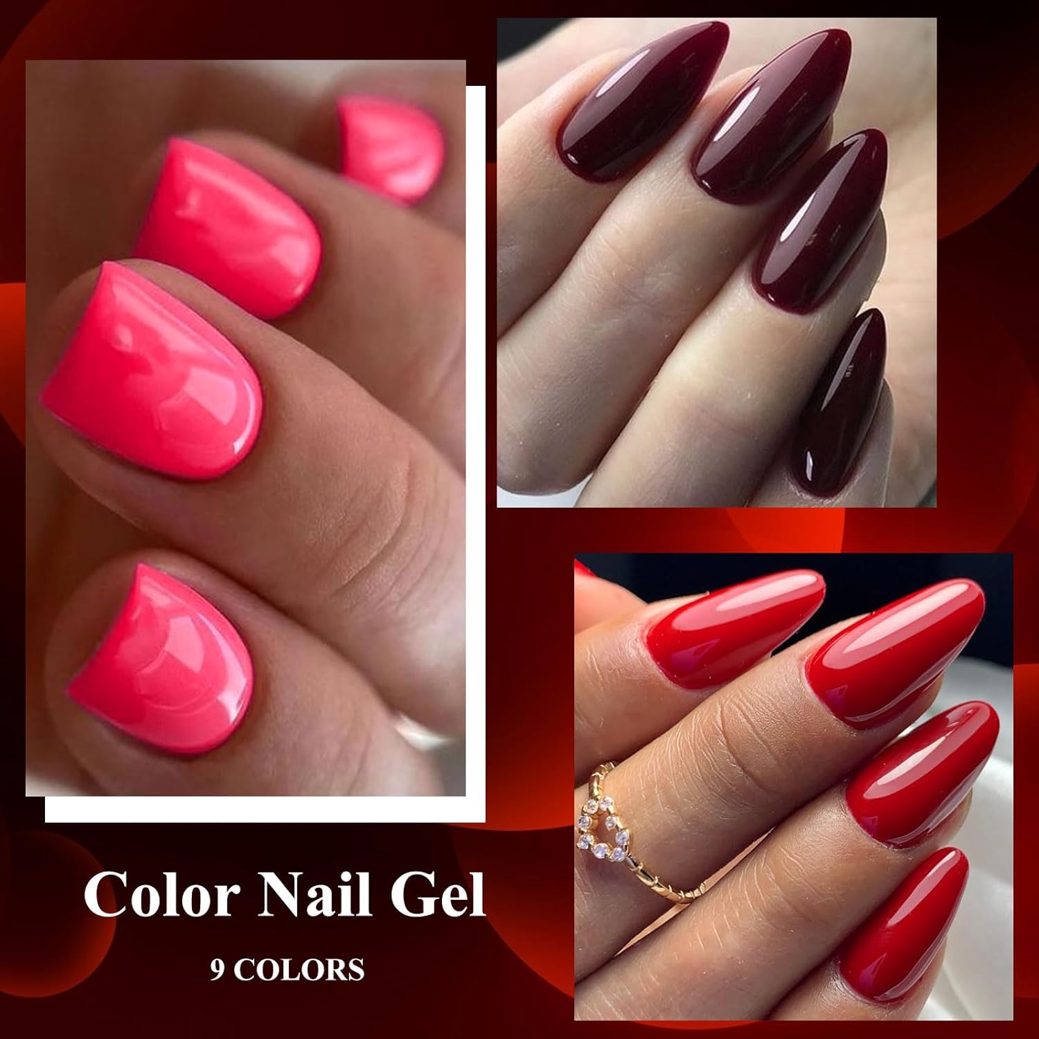 - What You Get: 9 Colors Gel Nail Polish + 3PCS Function Gel (0.25oz/7ml each bottle). 9 colors beautiful shades of popular and trendy colors suitable for all seasons and daily routine life!