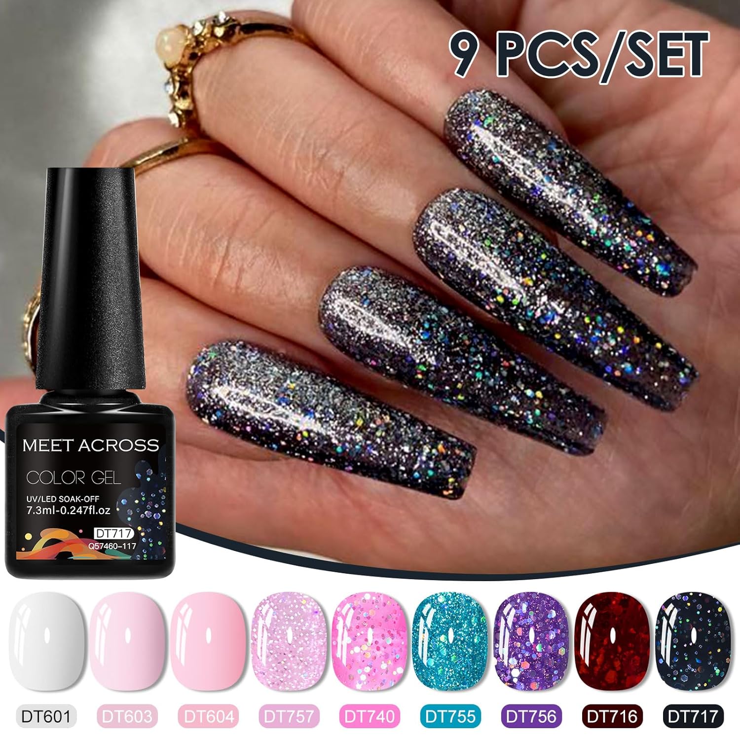 MEET ACROSS 9 Colors Gel Nail Polish + 3PCS Function Gel Nail Polish Kit,Fashion Nail Art Set Design Gifts for Women Manicure Salon (SET20, 12pcs)