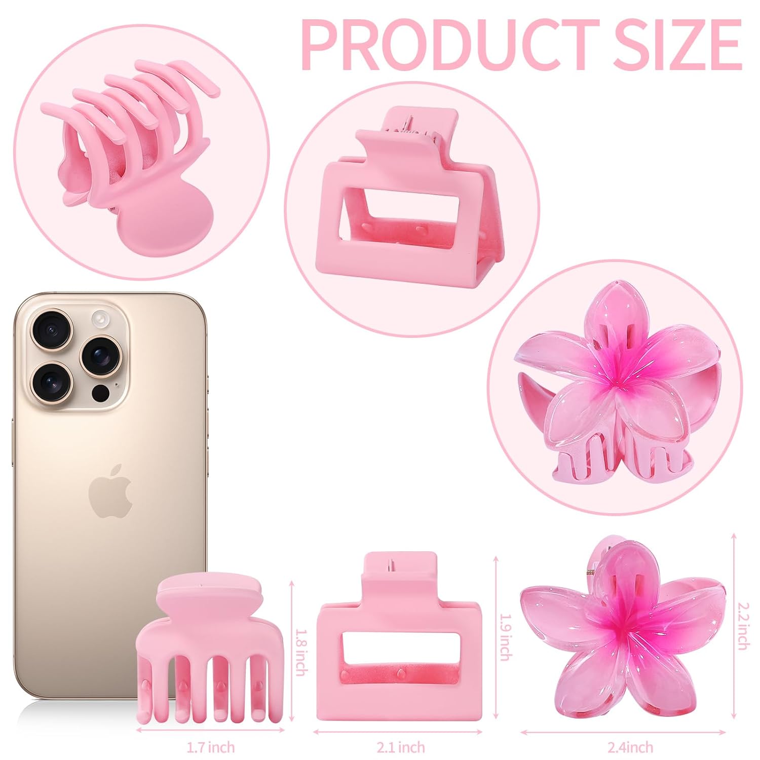3 Styles Medium Hair Clips for Women 9 Pcs Small Claw Clips for Thin Hair Flower Hair Clips for Thick Hair Square Hair Claw Clips for Girls Hawaiian Plumeria Hair Accessories for Women (Pink)