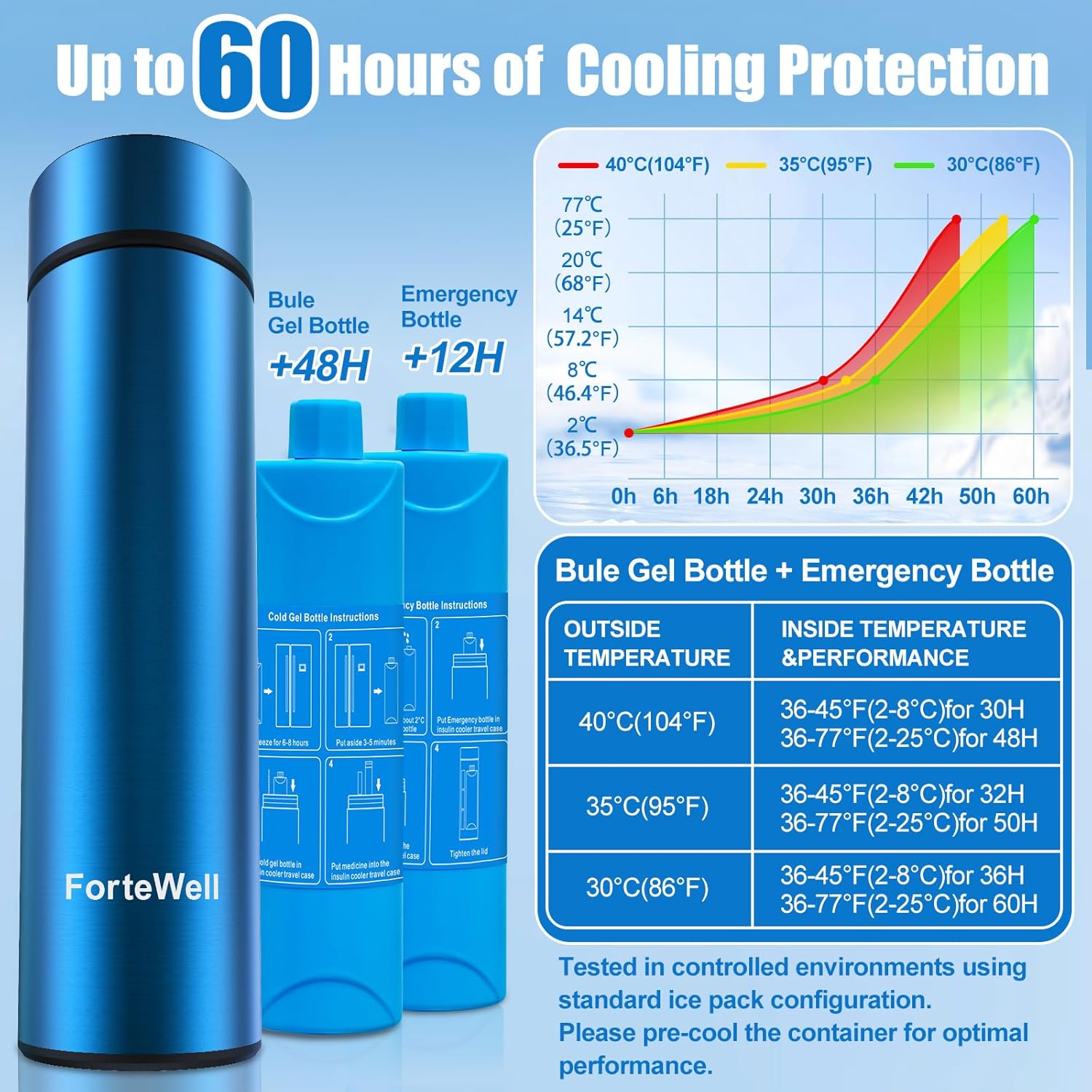 - 【60-Hour Insulin Cooler for Travel and Daily Use】 - This insulin travel case keeps your medications cool for up to 60 hours using advanced vacuum insulation and bio-gel ice packs. Ideal for long trips, outdoor activities, or extended business travel – your insulin stays effective and safe