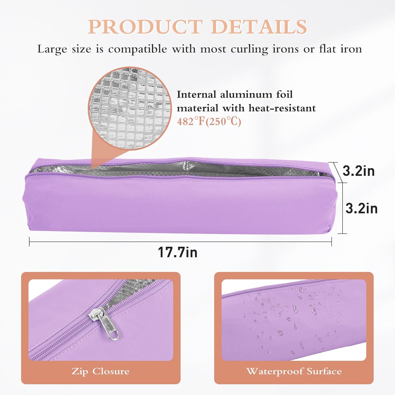 - EXCELLENT DESIGN: This curling iron holder bag is designed with 17.7 x 3.2 x 3.2 inches, and can accommodate most hair styling tools; It weighs 0.18 lb only and will not place an extra burden when you travel; The inner lining of our flat iron travel case is made of special aluminum foil material which can be cleaned by gently wiping it with a cleaning cloth