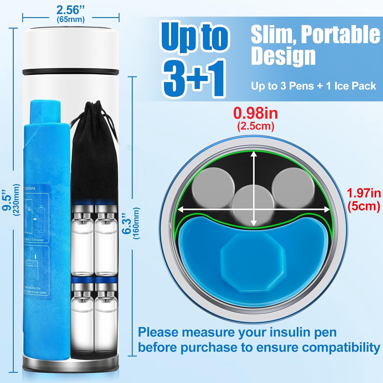 - 【Fits 2–3 Insulin Pens or Vials – Compact Yet Spacious】- Hold up to 3 insulin pens or medicine vials, this compact insulin pen cooler travel case is perfect for your daily use or multi-day trips. Compatible with most popular insulin pen models on the market