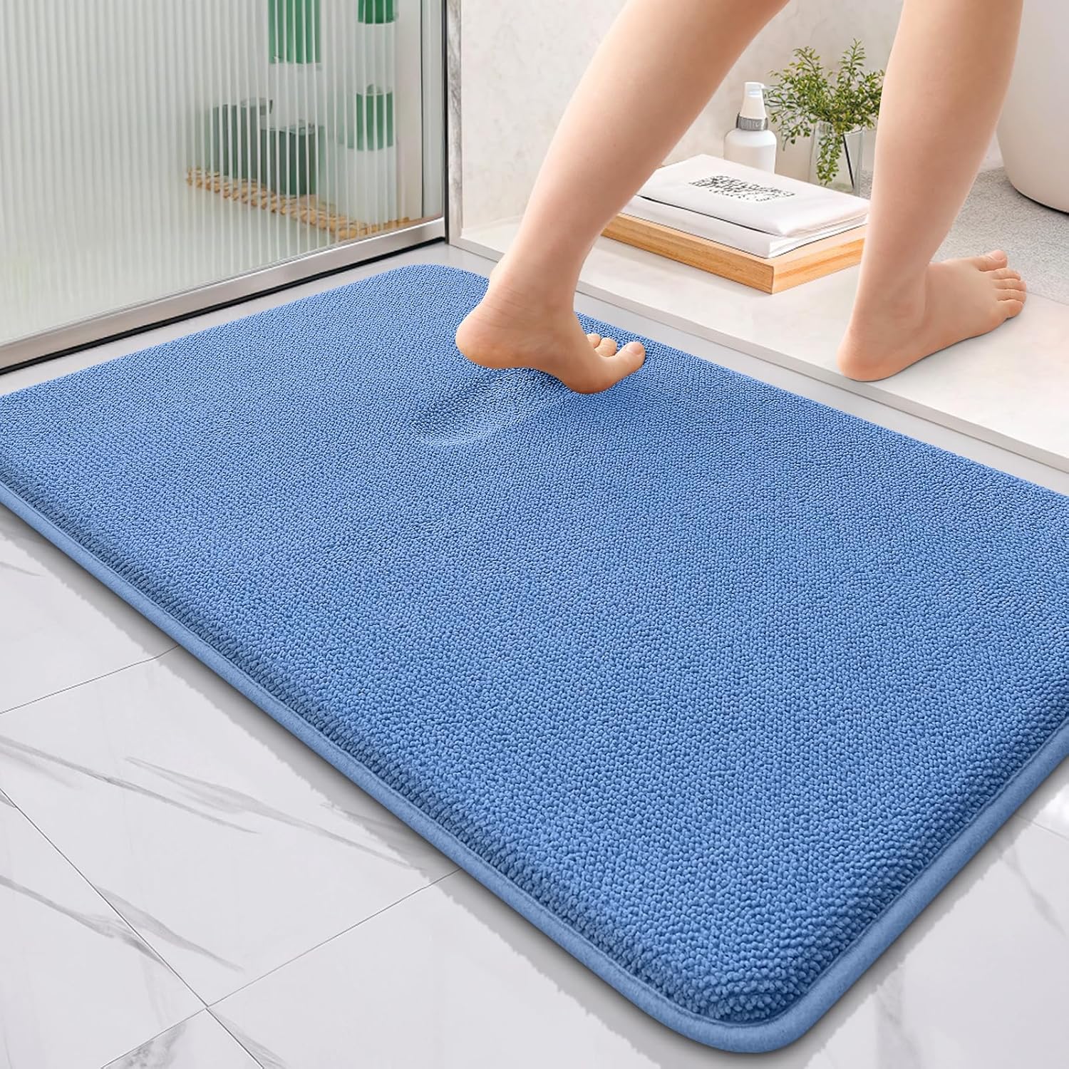 OLANLY Thick Memory Foam Bath Mat Rug 36x24, Extra Soft Absorbent Bathroom Rug, Quick Dry Bath Mat, Non-Slip, Machine Washable Carpet for Floor, Tub and Shower, Home Decor Accessories, Cornflower Blue