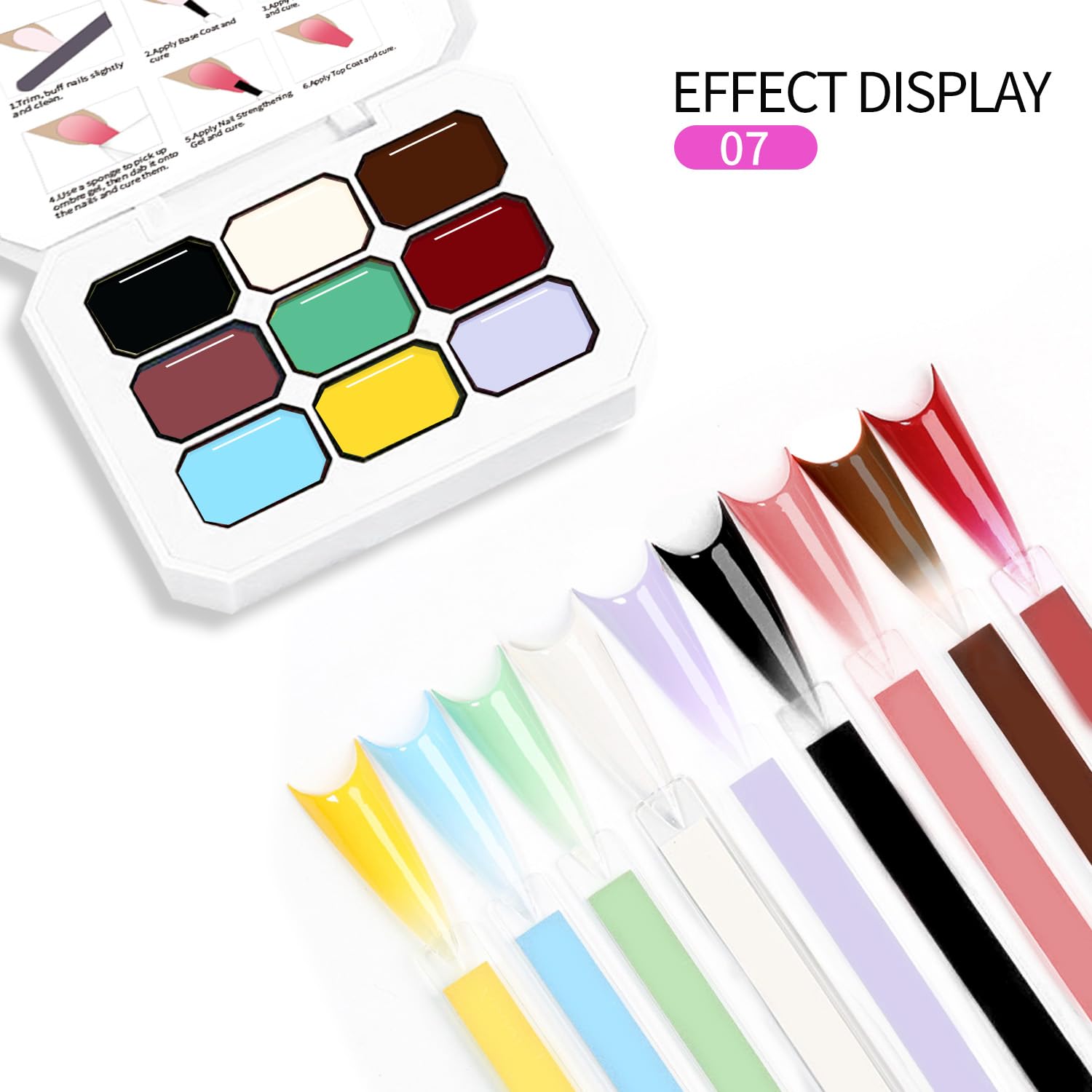 - Warm Tips:ombre gel of each color is sealed with a protective sticker to maintain freshness. When opening, don’t remove the sticker entirely. Peel back a corner for access and carefully reseal after each use to prevent drying and spills.