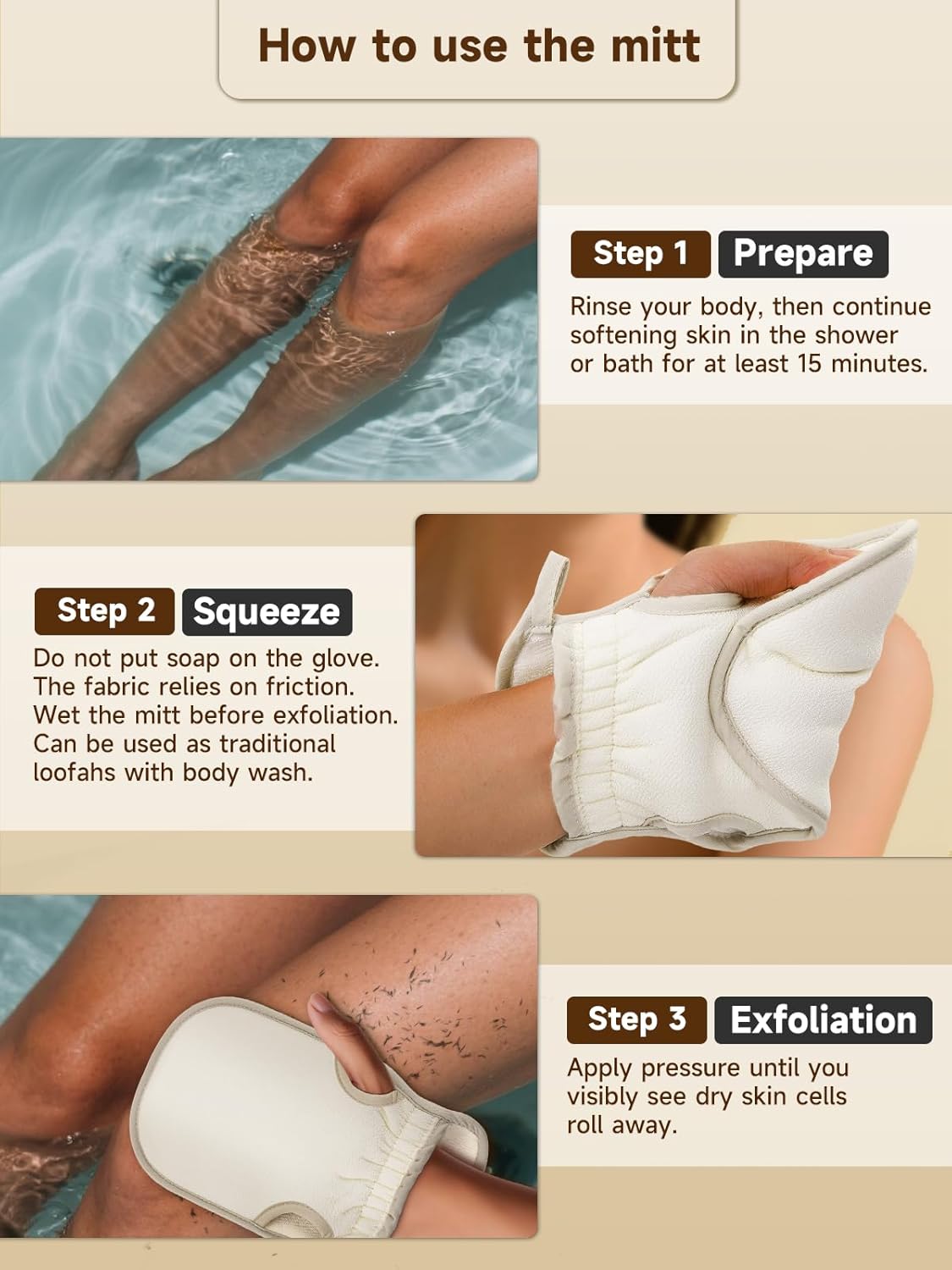 • Spa-like Deep Exfoliation: Provide spa-like experience into your self-care routine at home with deep moroccan exfoliating gloves. Our korean skin scrubber gives you the smoothest skin ever! Use this dead skin remover for body deep exfoliation 2–4 times per month, you’ll get improved skin texture, better product absorption, and fewer bumps & ingrown hairs, all while combating keratosis pilaris