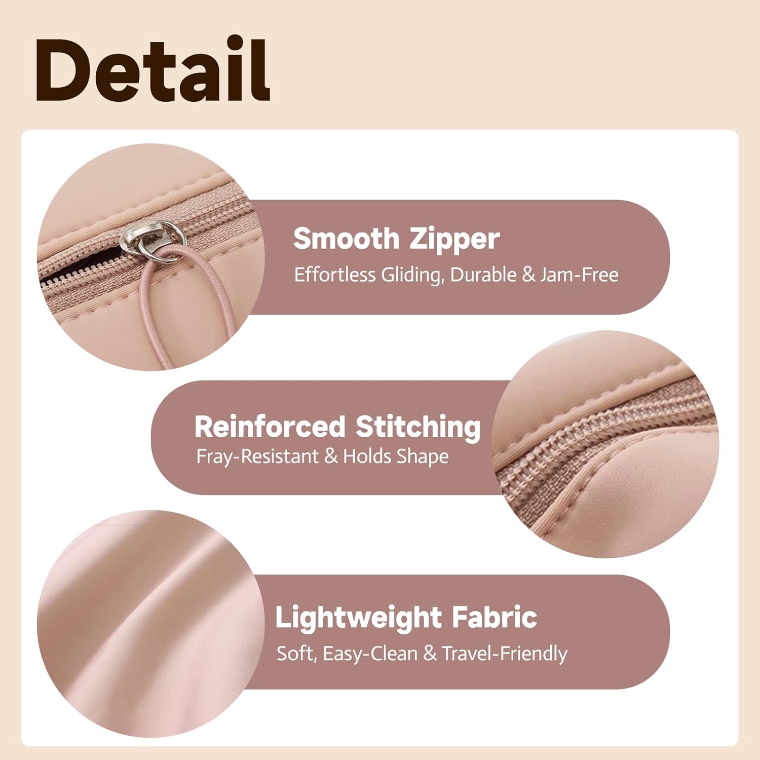 • /Premium Fabric/:Small makeup bag for purse is crafted from special air-layer fabric—soft, elastic, and shock-absorbent.The zippered closure ensures contents stay secure, With this makeup bag organizer, enjoy worry-free use.