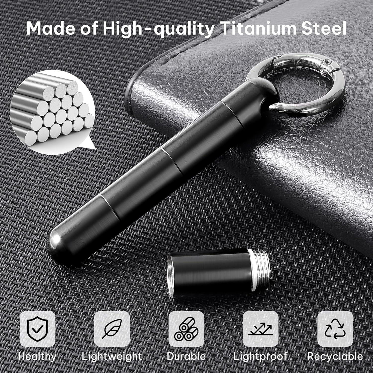 - Pure Titanium Alloy: This pill holder is crafted from pure titanium steel, a material renowned for its exceptional qualities, including resistance to pressure, durability, lightweight design, non-toxicity, and recyclability. These features ensure the utmost safety and protection for your pills