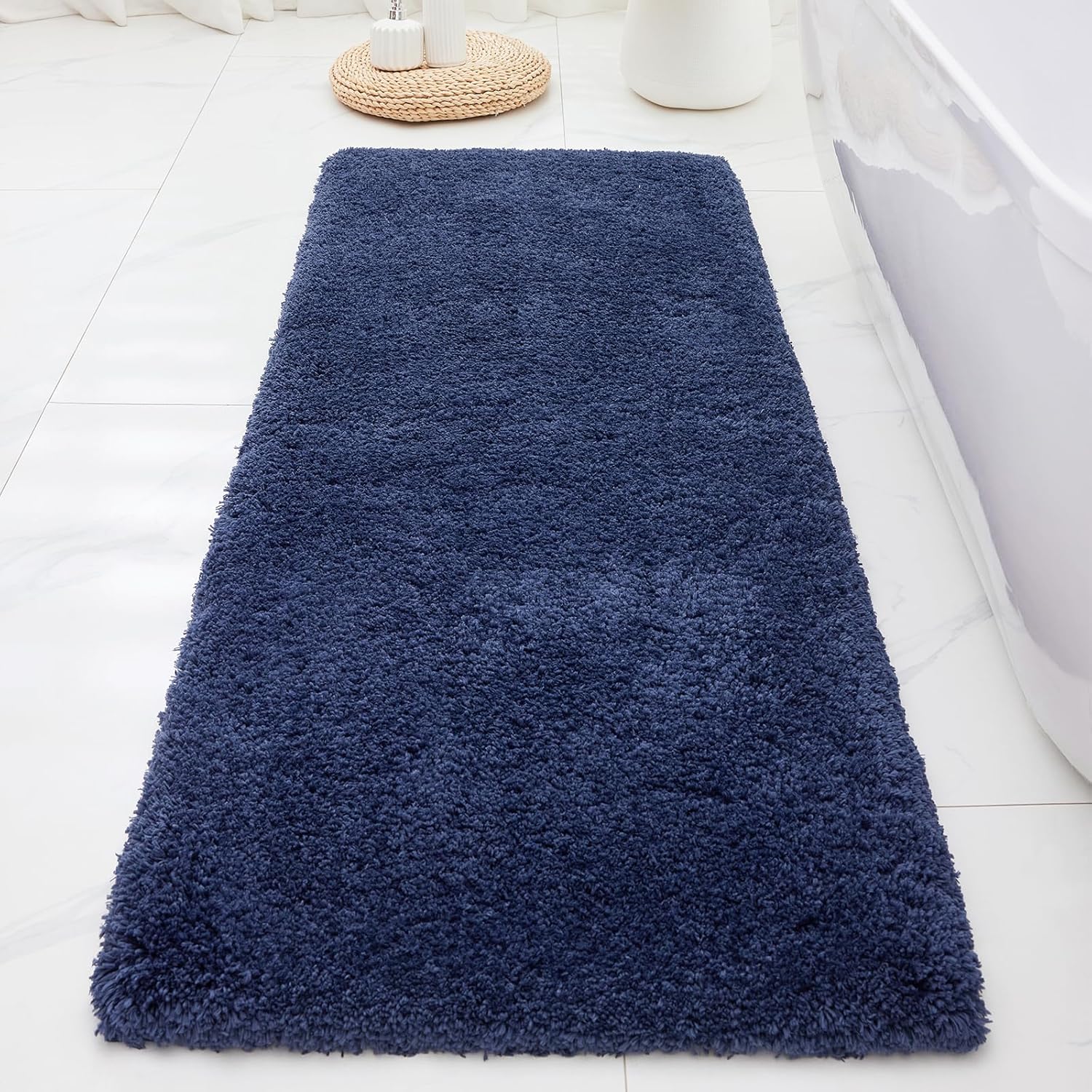 ILANGO Navy Blue Bathroom Rugs 48" × 24" Non Slip & Super Absorbent Extra Thick Soft, Washable Bath Mat for Floor, Microfiber Plush Shaggy Bath Rug with Rubber for Bathtub Shower Room Sink