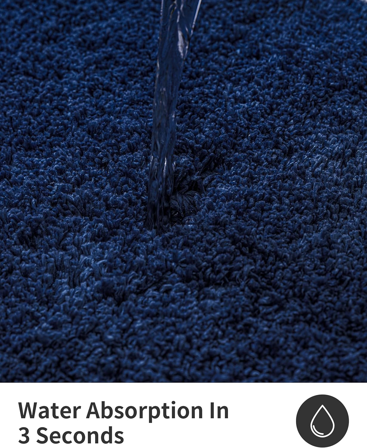 ILANGO Navy Blue Bathroom Rugs 24" × 17" Small Non Slip & Super Absorbent Extra Thick Soft, Washable Bath Mat for Floor, Microfiber Plush Shaggy Bath Rug with Rubber for Bathtub Shower Room Sink
