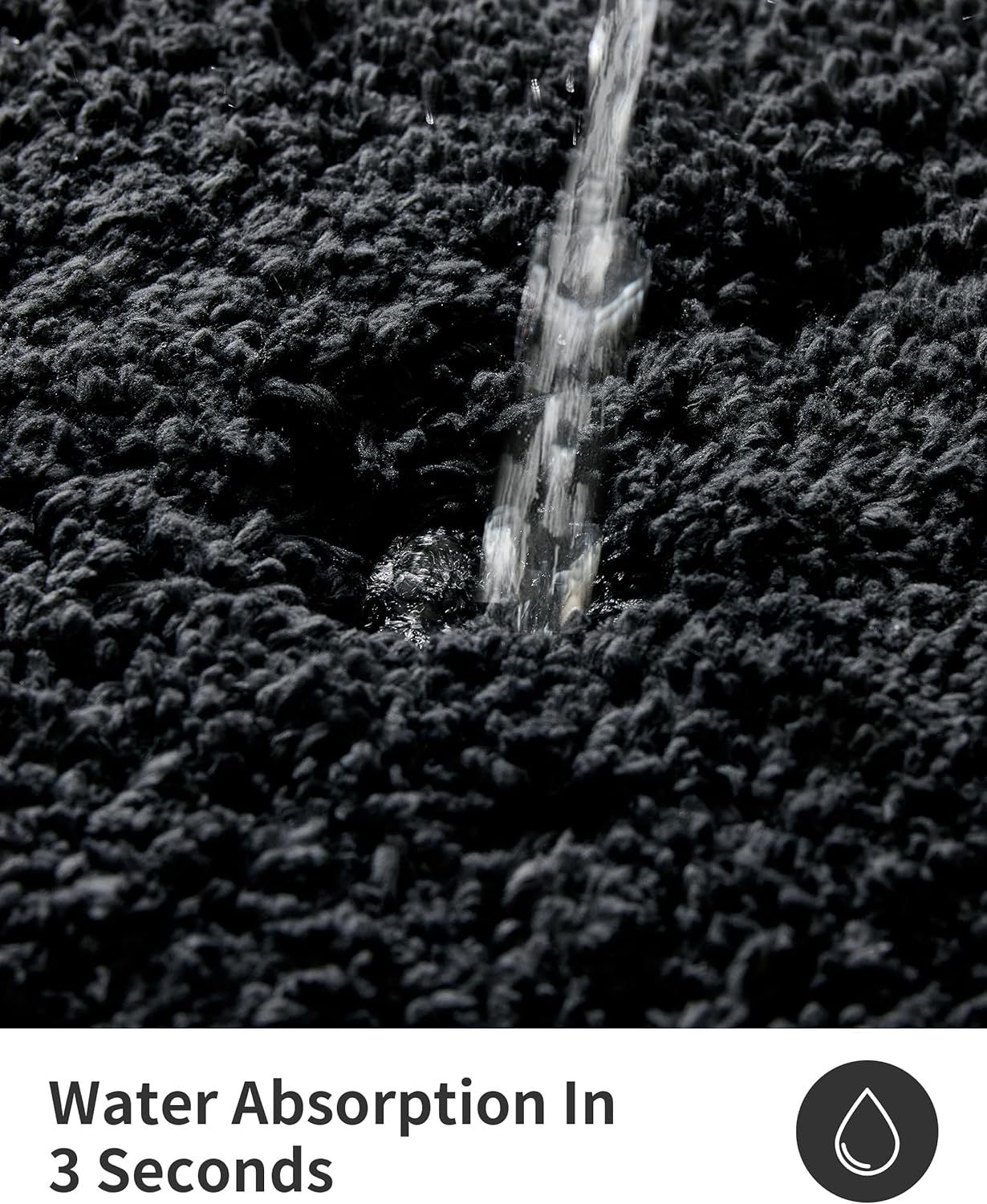 ILANGO Black Bathroom Rugs 36" × 24" Non Slip & Super Absorbent Extra Thick Soft, Washable Bath Mat for Floor, Microfiber Plush Shaggy Bath Rug with Rubber for Bathtub Shower Room Sink
