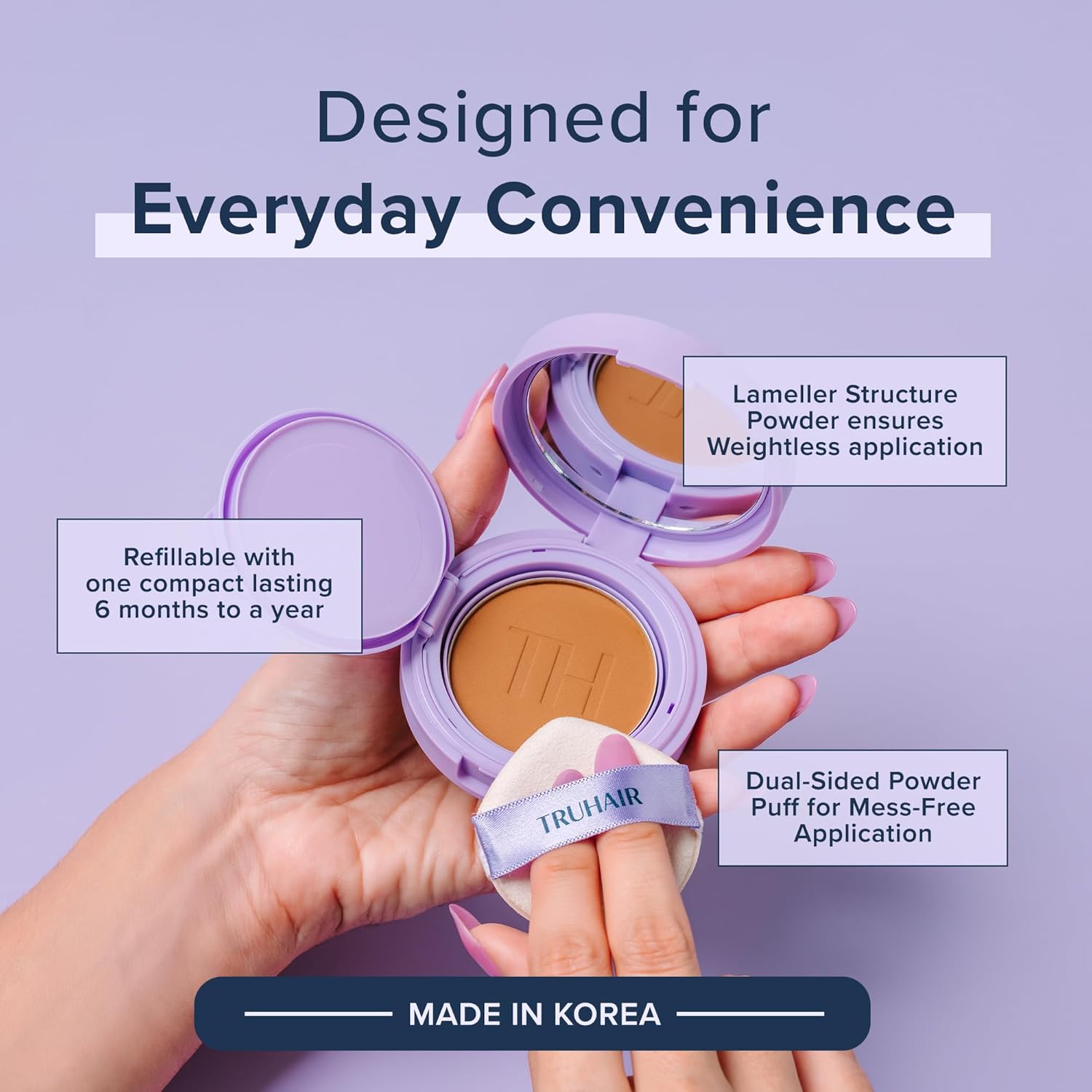 TRUHAIR Root & Scalp Cover Up Pressed Powder Compact, Waterproof, Weightless Hair Coverage & Bald Spot Concealing, Root Touch Up Hair Color for Gray Coverage & Thinning Areas, 0.35 Oz (Dark Brown)