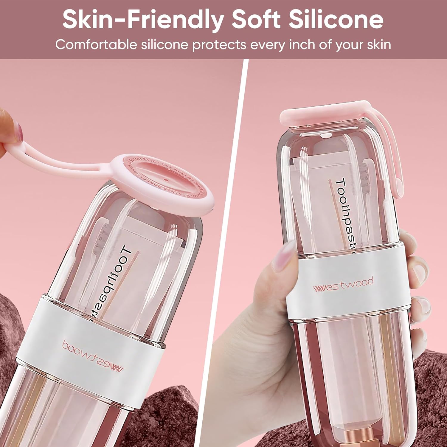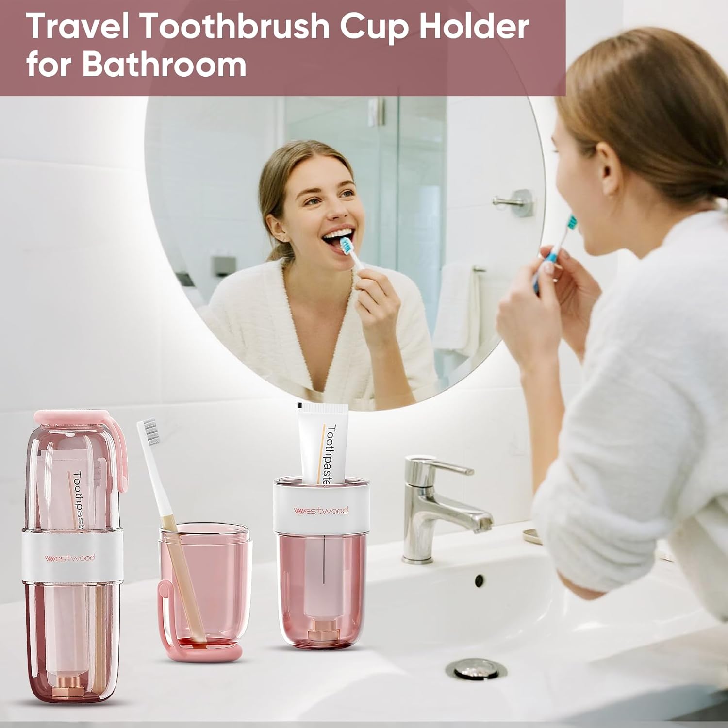 Westwood Travel Toothbrush Case Travel Toothbrush Holder with Cup, Large Toothbrush Container for Toothbrush Toothpaste Razor, Portable Toothbrush Holder with Cover for Home Business School (Pink)