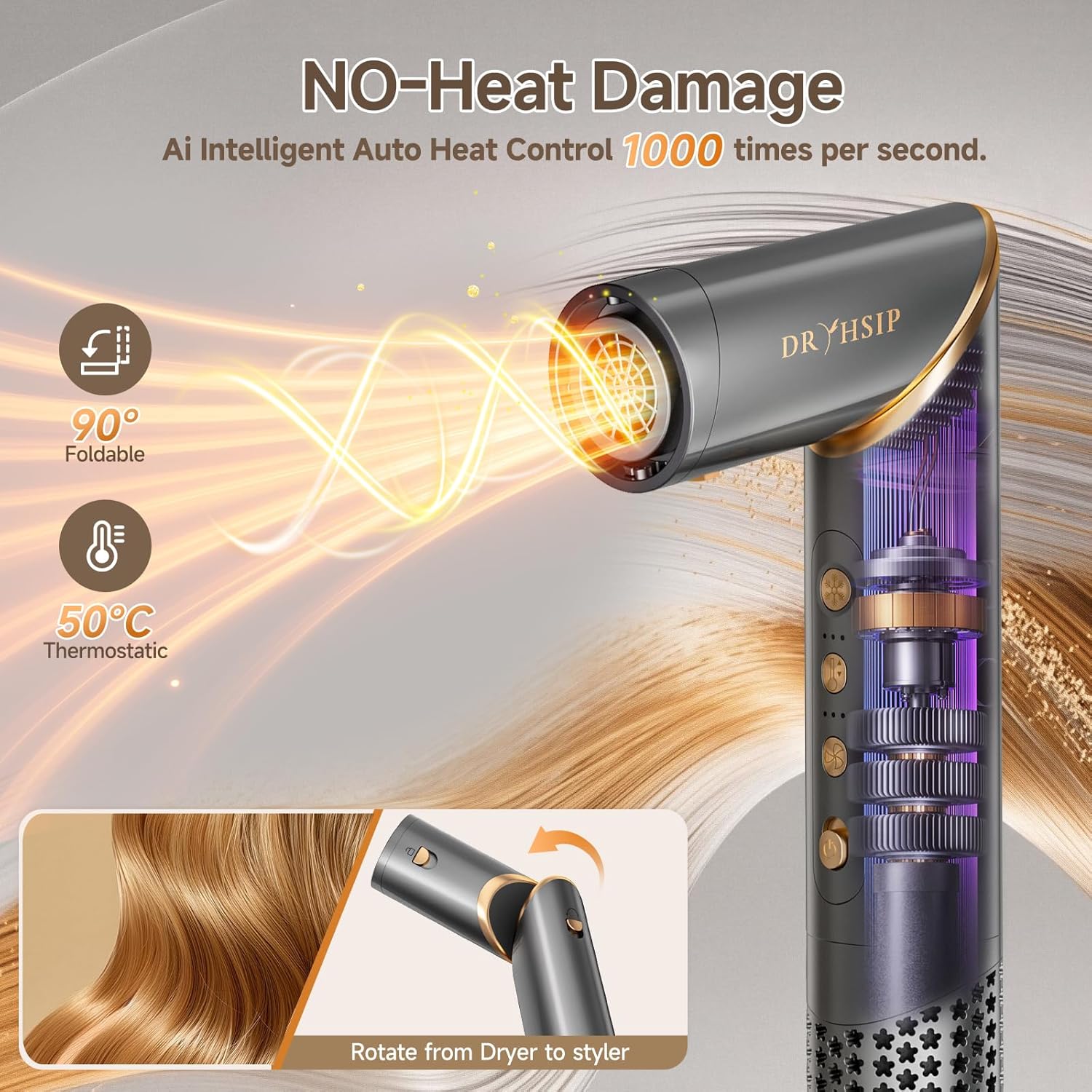 - 110,000 RPM High-Speed Motor for Fast Drying: Featuring a powerful motor, this styler delivers high-velocity airflow that dries hair quickly with less heat exposure, helping to minimize thermal damage while saving time