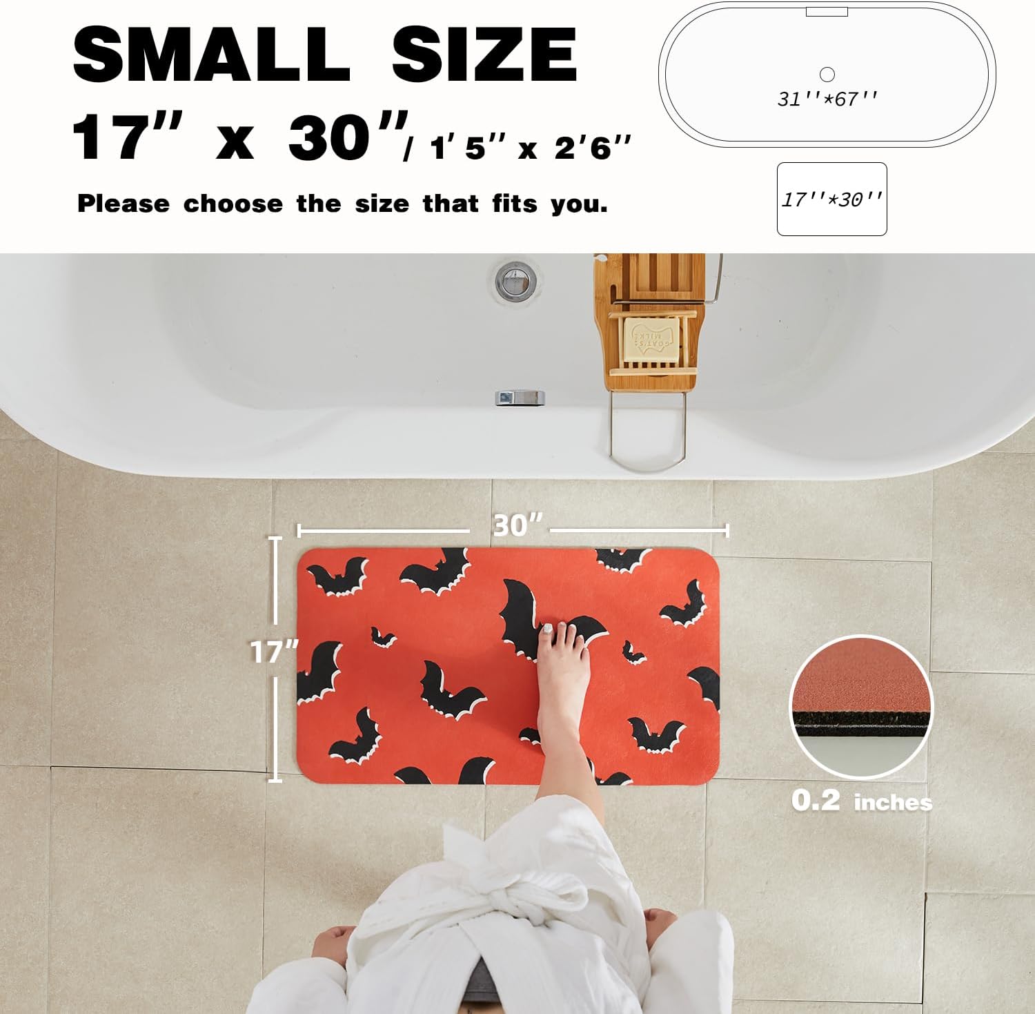- Super Absorbing & Quick Drying: Our halloween bathroom mat absorbs water instantly as you step out of the shower or bathtub. And it completely dry in just a few minutes, with no watermarks left behind. Always keep your floor stays clean and dry