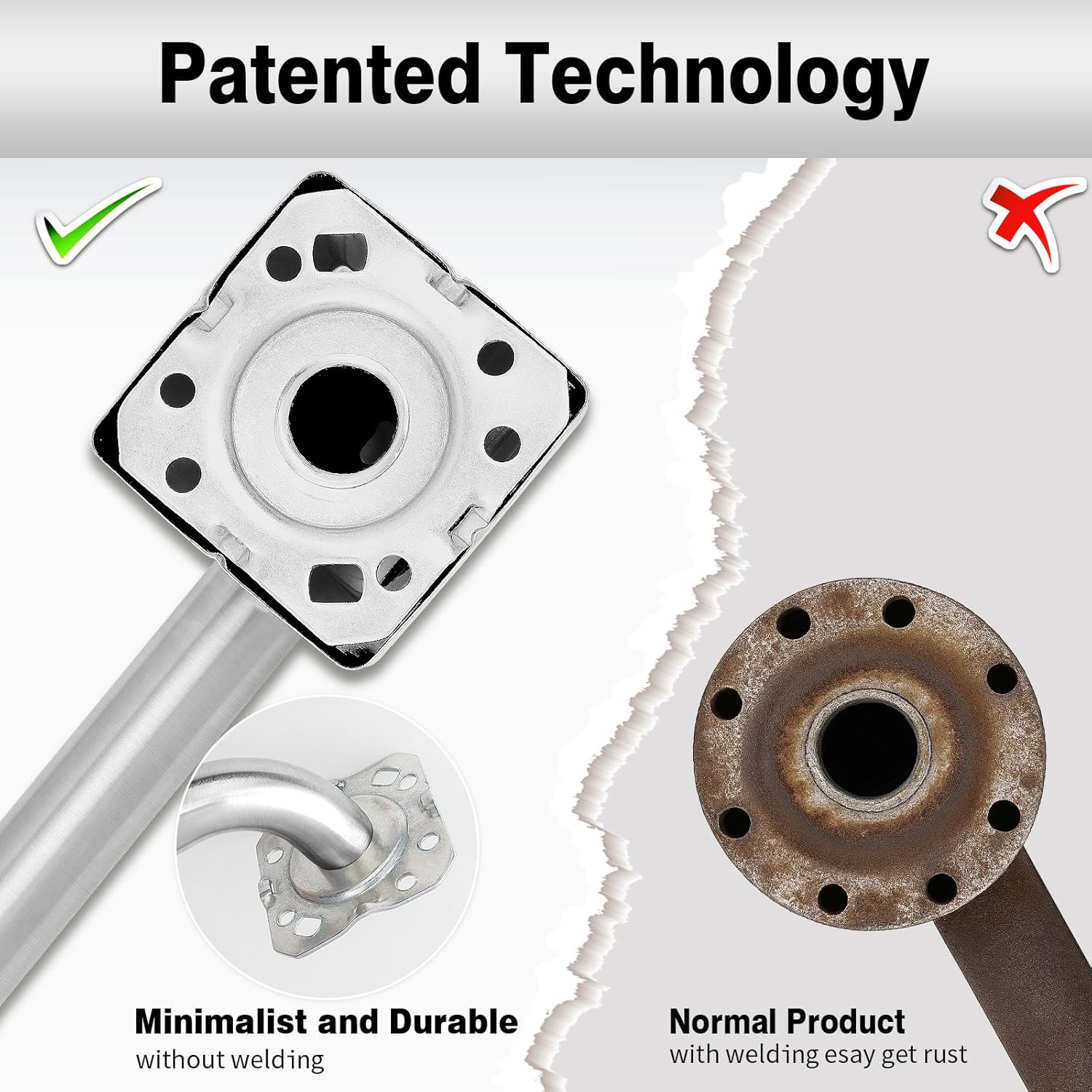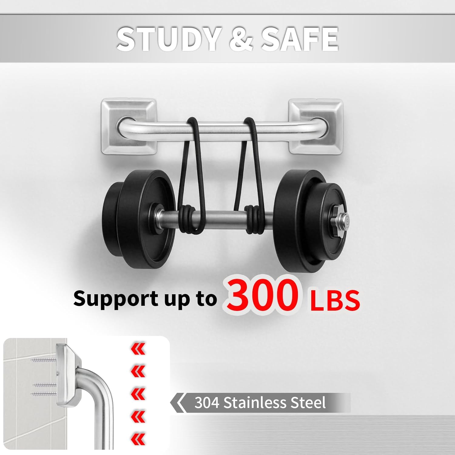 - 【Sturdy and Long-lasting】Our non-slip square grab bars for shower is constructed from 304 stainless steel (0.87" diameter, 0.07" flange thickness), offering exceptional rust and corrosion resistance. Up to 300 pounds of pulling force, this grab handle can provide a safer bathroom environment for your family