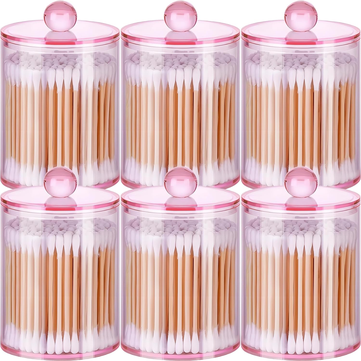 AXX Qtip Dispenser Apothecary Jars Bathroom - Qtip Holder Storage Canister Clear Plastic Jar for Cotton Swab,Q-Tips,Cotton Rounds (Pink 6Pcs)