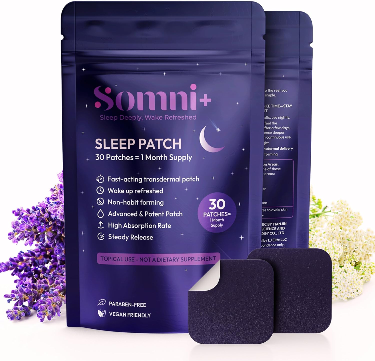 Somni+ Sleep Patches for Adults | Extra Strength Melatonin Sleep Patch | Natural, Drug-Free, Non-Habit Forming | Supports Restful Sleep | Long Lasting Effect | Wake Up Refreshed | 30 Sleep Patches