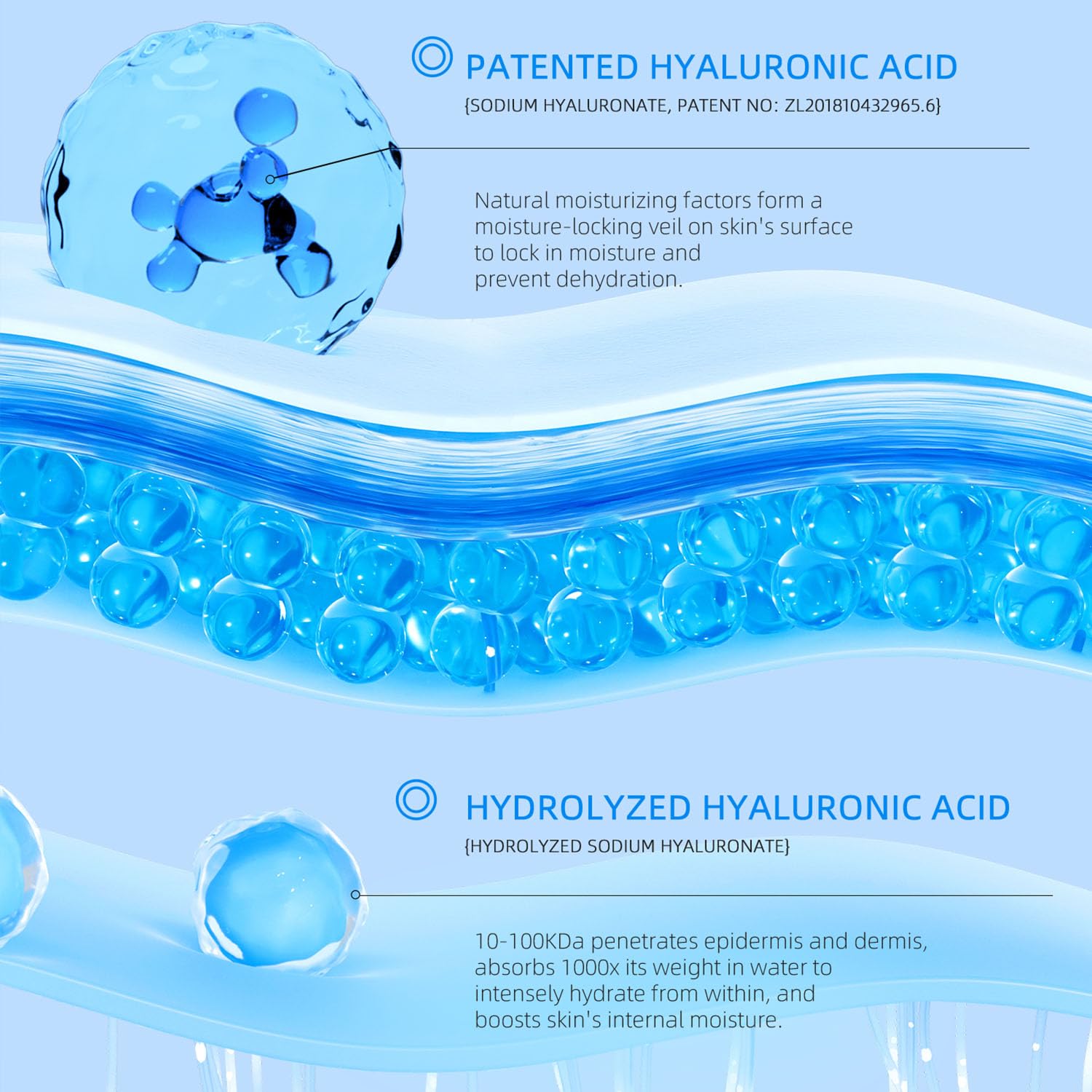 - This hydrating face mist features sodium hyaluronate (hyaluronic acid) and Columbia glacier mineral water, rich in over 70 beneficial minerals and trace elements. This facial mist spray hydration formula deeply hydrates without drying the skin.