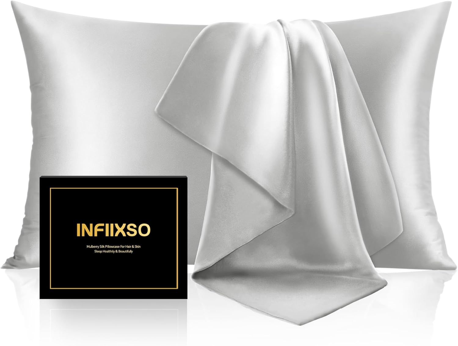 - 【Ultra Smooth and Soft】-- Silk is a kind of natural high-grade fiber, with light and soft, moisture absorption, skin comfort, and other characteristics. INFIIXSO Mulberry silk pillowcases are offering a soft and smooth touch for the ultimate sleeping experience, ensuring you enjoy maximum comfort every night.