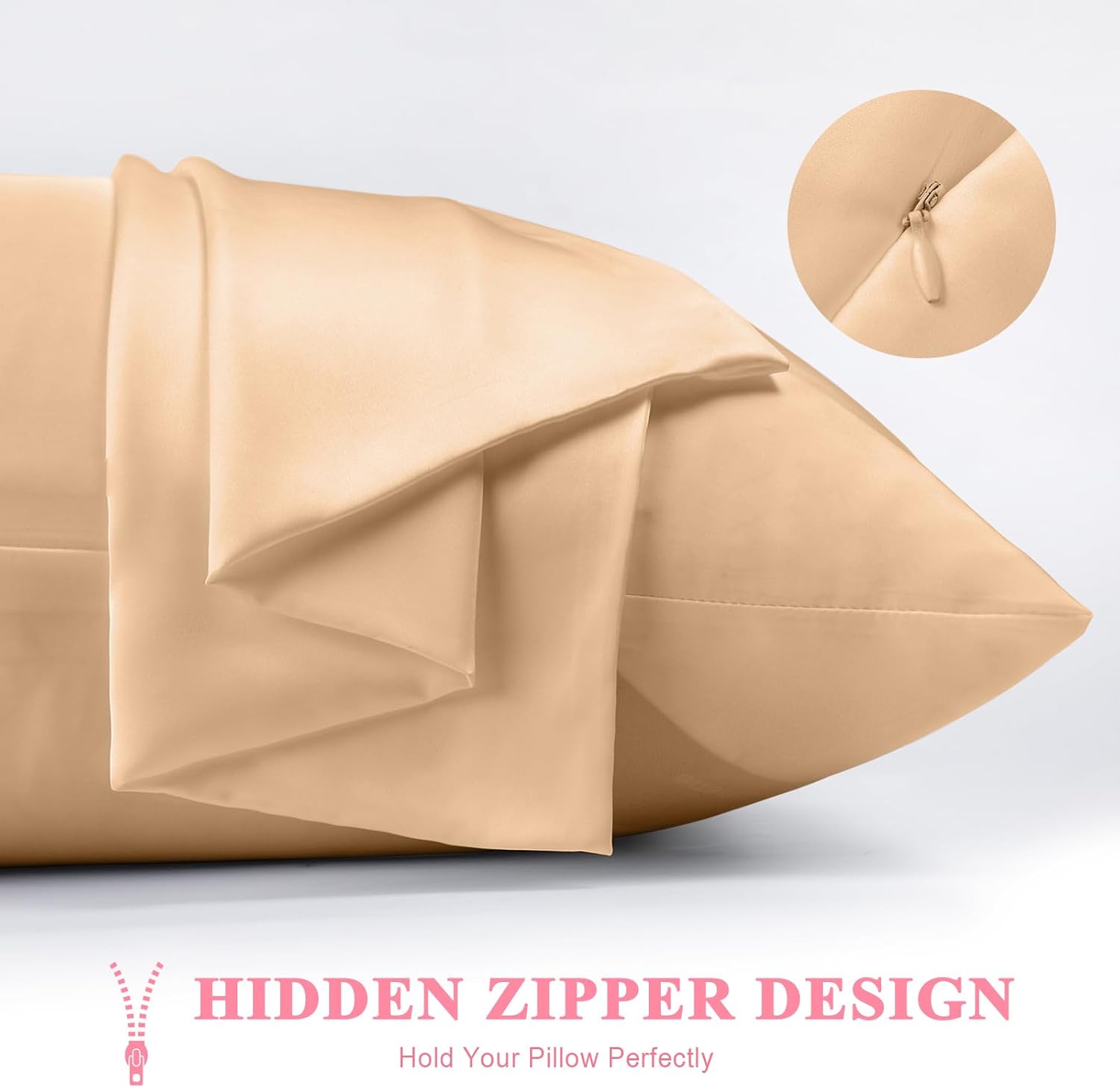 100% Silk Pillowcase 2 Pack for Hair and Skin, Both Sides 23 Momme Grade 6A+ Mulberry Silk Pillowcases with Hidden Zipper, Soft&Smooth Cooling Pillow Cases (Champagne, Queen 20×30)
