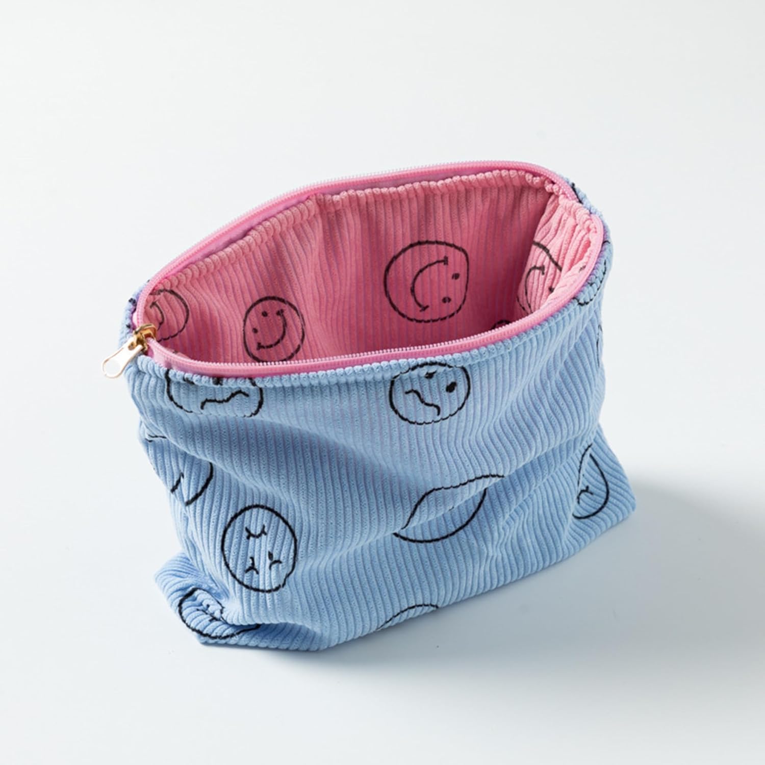Cosmetic Bags for Women - Corduroy Cosmetic Bag Aesthetic Women Handbags Purses Smile Dots Makeup Organizer Storage Makeup Bag Girls Case Bags (Double Pink Blue)