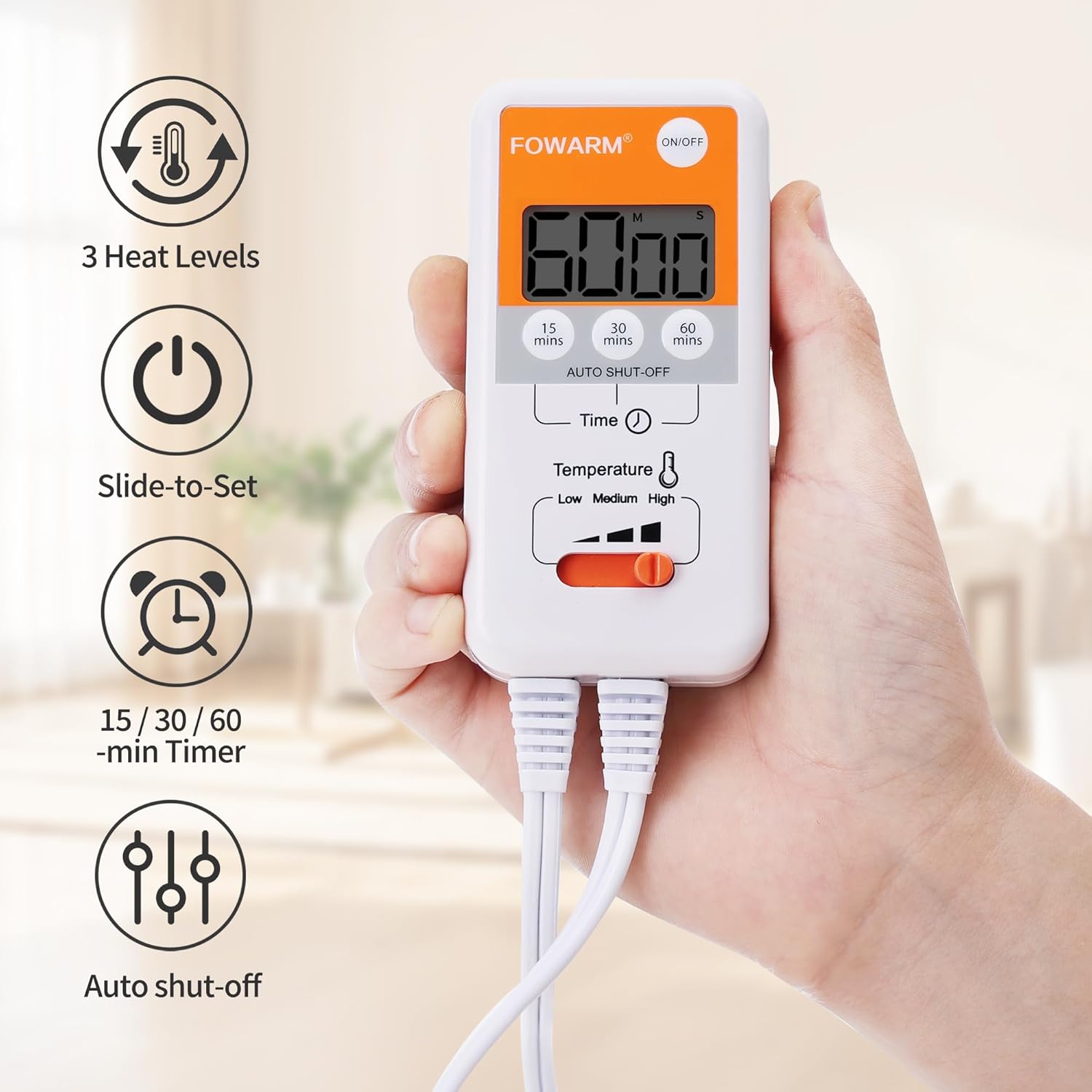 - Customizable Heat & Safety Settings: Choose from Low, Medium, or High (113°F–158°F) with 15, 30, or 60-minute auto shut-off options. Memory function recalls your last setting for convenience and peace of mind during use.