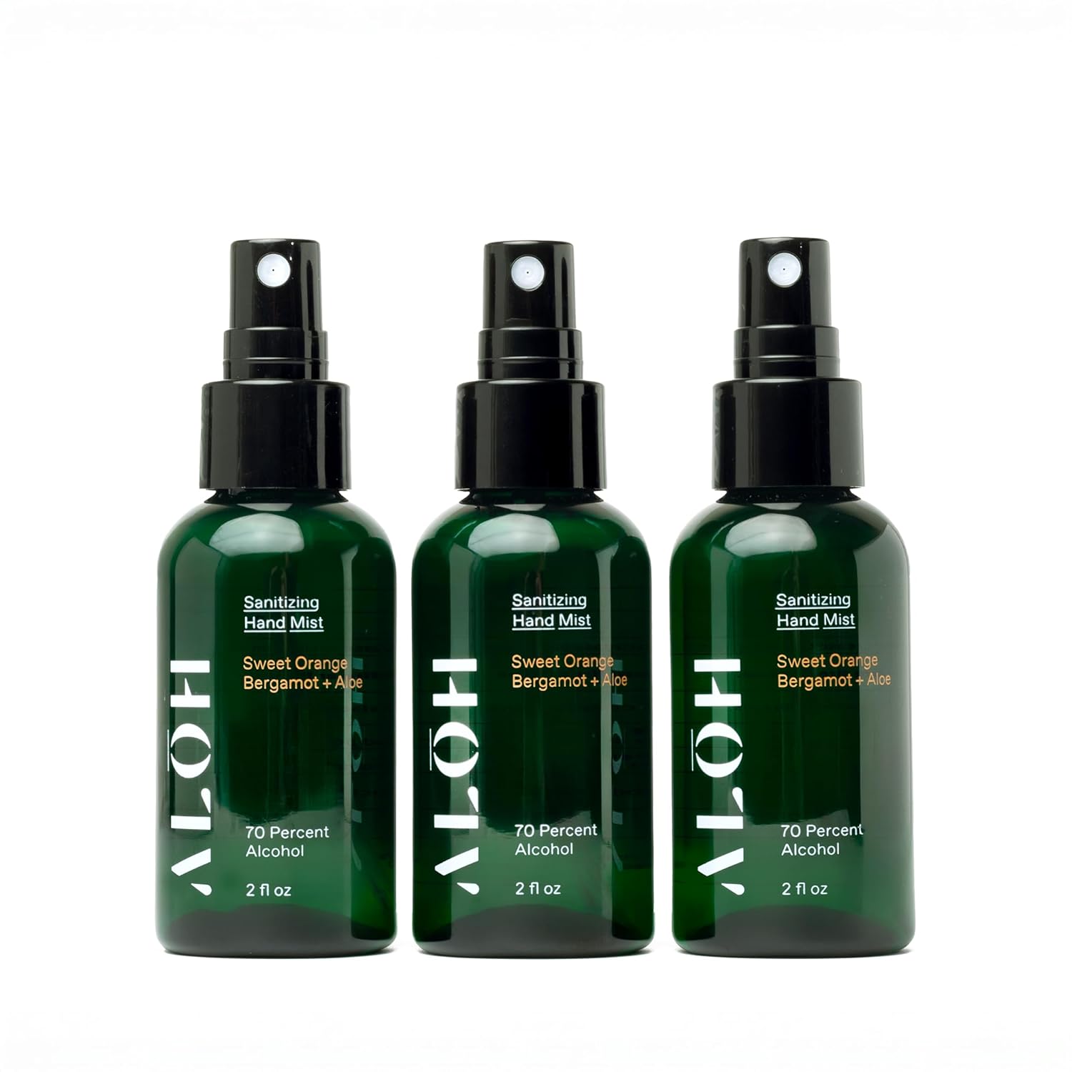 ALOH Hand Sanitizer Spray Liquid 3-pack | Sweet Orange Bergamot + Aloe | 70% Alcohol Hydrating Hand Sanitizer Spray with Essential Oil, for Kids & Adults | 2oz Travel Size Bottle (set of 3)