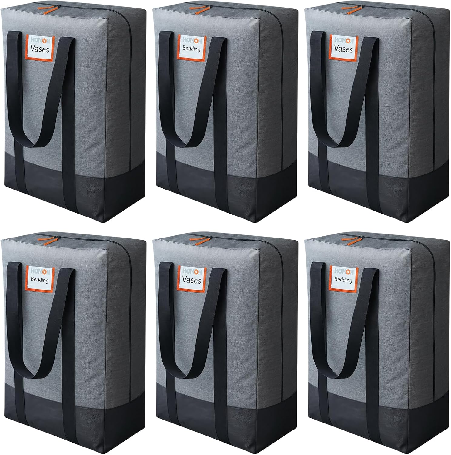 6 Pack Large Moving Bags, Storage Bag with Zipper, Heavy Duty Packing Bags with Internal Compression Straps, Wrap Around Handles, Alternative to Moving Boxes, Grey and Black